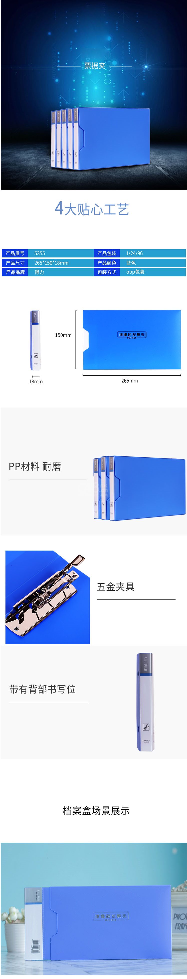 “deli/得力”No.5355 票據(jù)夾 單個(gè)裝(顏色隨機(jī)增值稅專用收納夾財(cái)務(wù)存儲(chǔ)夾子金屬夾具資料文件夾板)