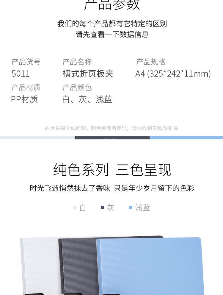 “deli/得力”No.5011 折頁板夾 單個裝(藍色A4橫式會議夾加厚硬文件夾詩朗誦簽約夾板試卷資料收納夾菜單夾文件收納用品)