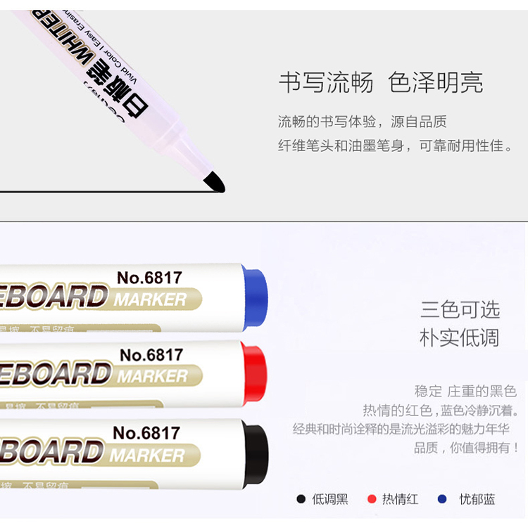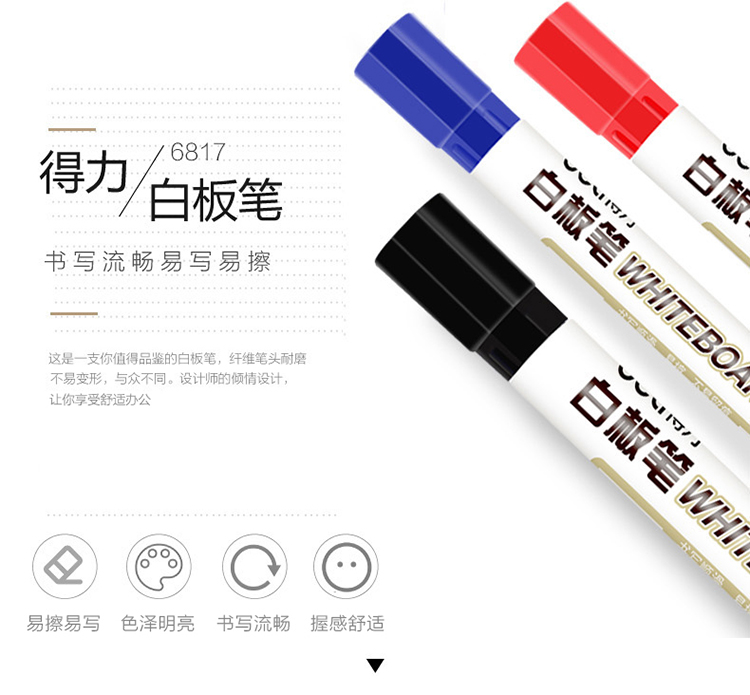 “deli/得力”No.6817 白板筆 1盒裝(藍(lán)色色澤明亮易擦不留痕10支/盒)
