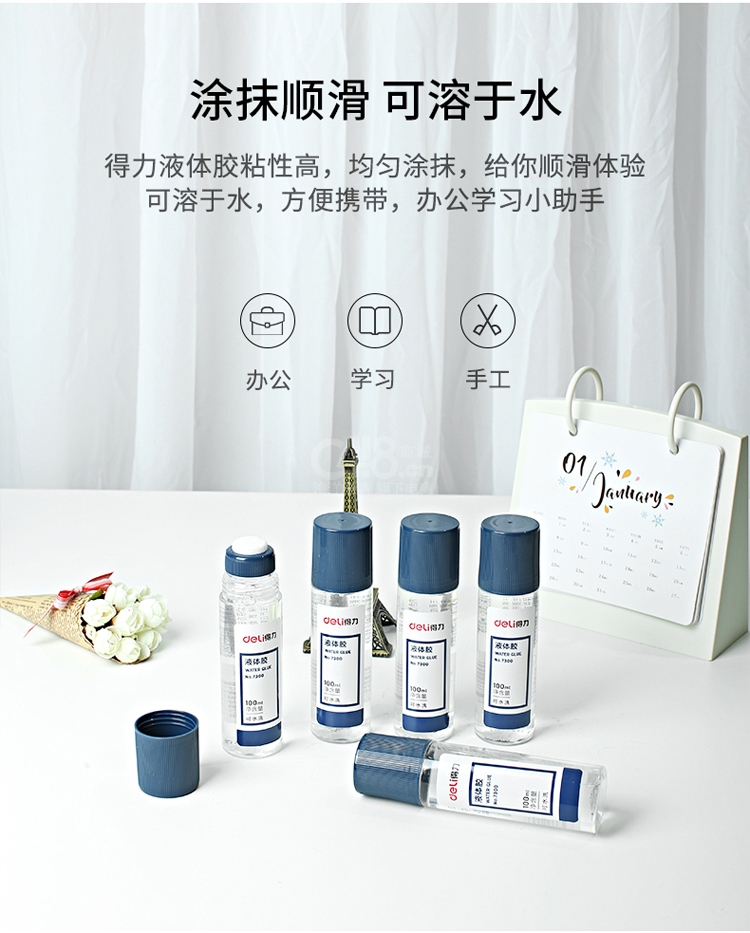 “deli/得力”No.7300 液體膠 單支裝(透明可水洗液體膠水12支/盒100ml/支)