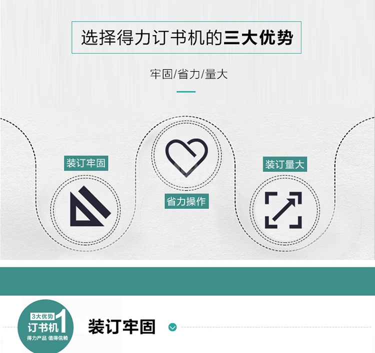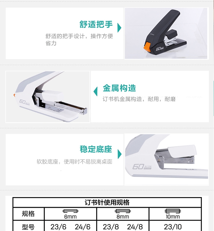 “deli/得力”No.0465 省力重型訂書機 單個裝(白色適60頁用釘23/6~23/10)