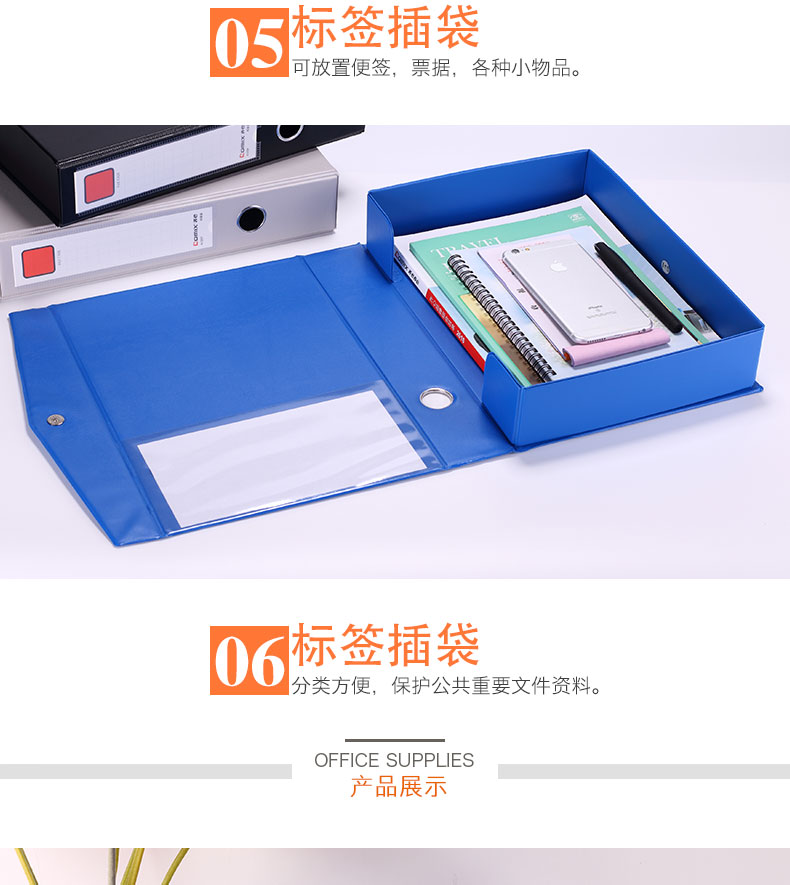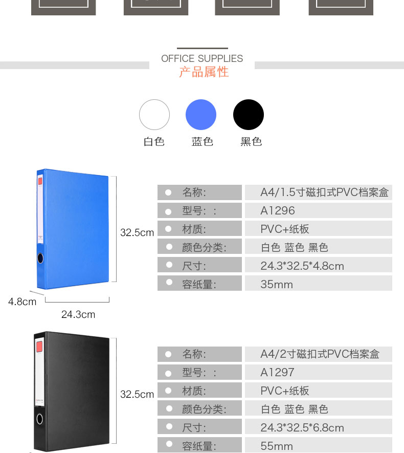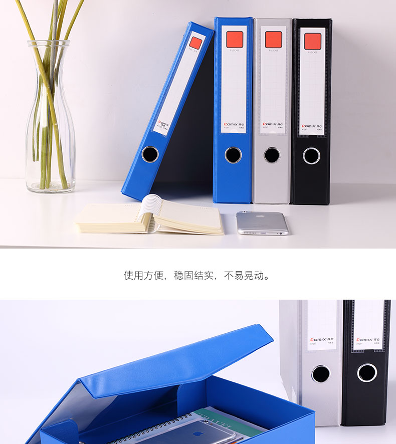 “COMIX/齊心”A1297 檔案盒 單個(gè)裝(藍(lán)色A4 55mm磁扣式PVC文件盒資料盒)