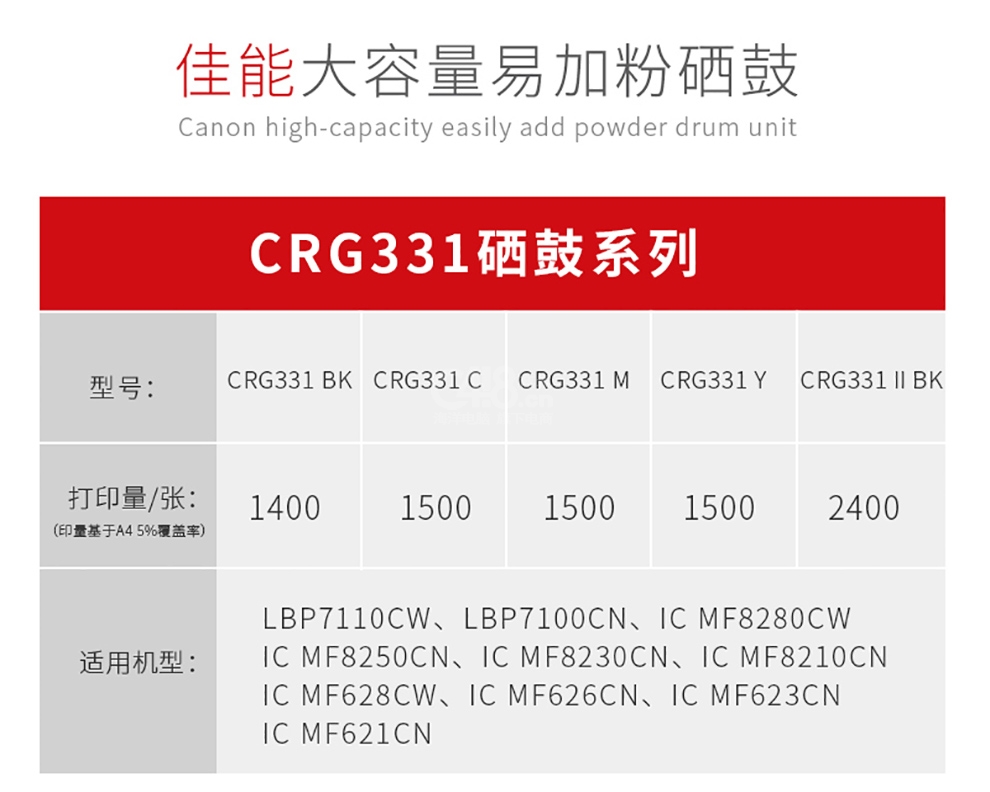 “Canon/佳能”CRG-331 BK C M Y 彩色激光機(jī)用硒鼓 四只/套裝(黑藍(lán)紅黃四色適用于LBP7100Cn/LBP7110CW/iC MF8280CW/MF8250CN)