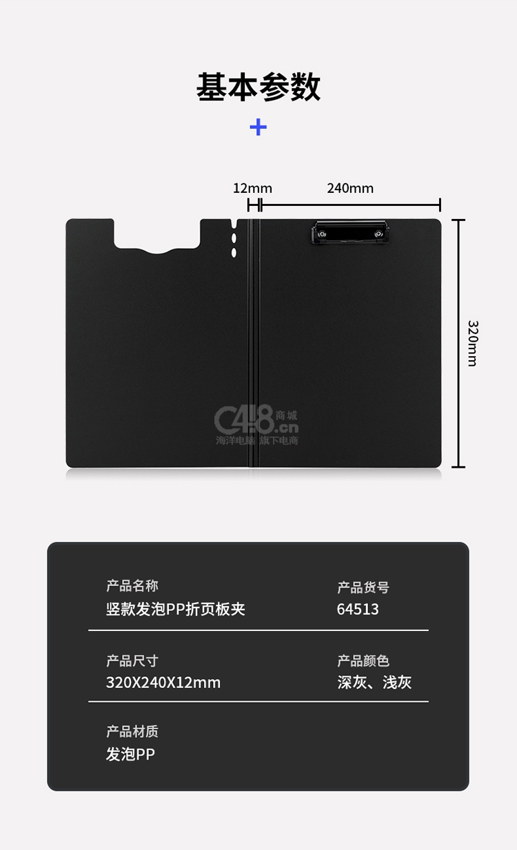 “deli/得力”No.64513 折頁板夾 單個裝(淺灰A4豎式會議夾加厚硬文件夾詩朗誦簽約夾板試卷資料收納夾)