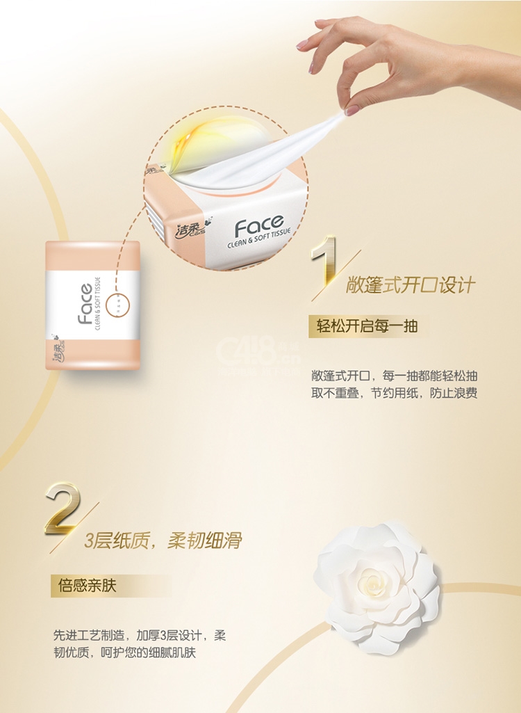 潔柔(C&S)紙巾Face柔韌系列3層120抽抽式面巾紙*6包(M號(hào))自然無(wú)香×1;6包/提; 新老包裝交替發(fā)貨