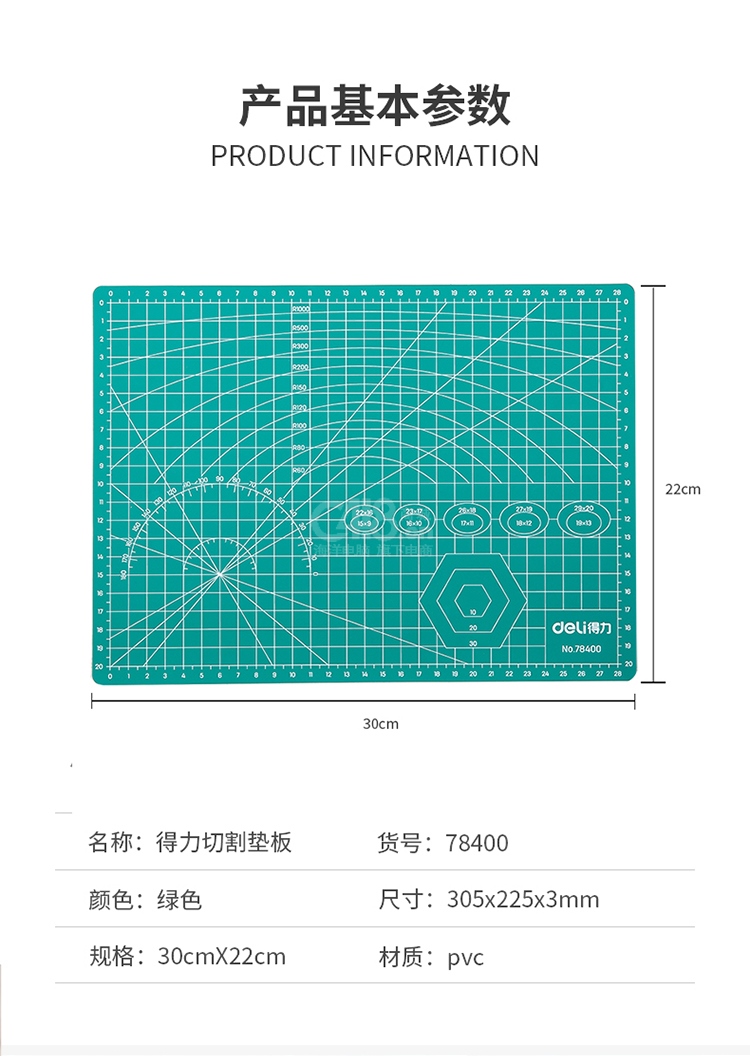 “deli/得力”No.78400 切割墊板 單個裝(綠色耐用PVC墊片桌墊)