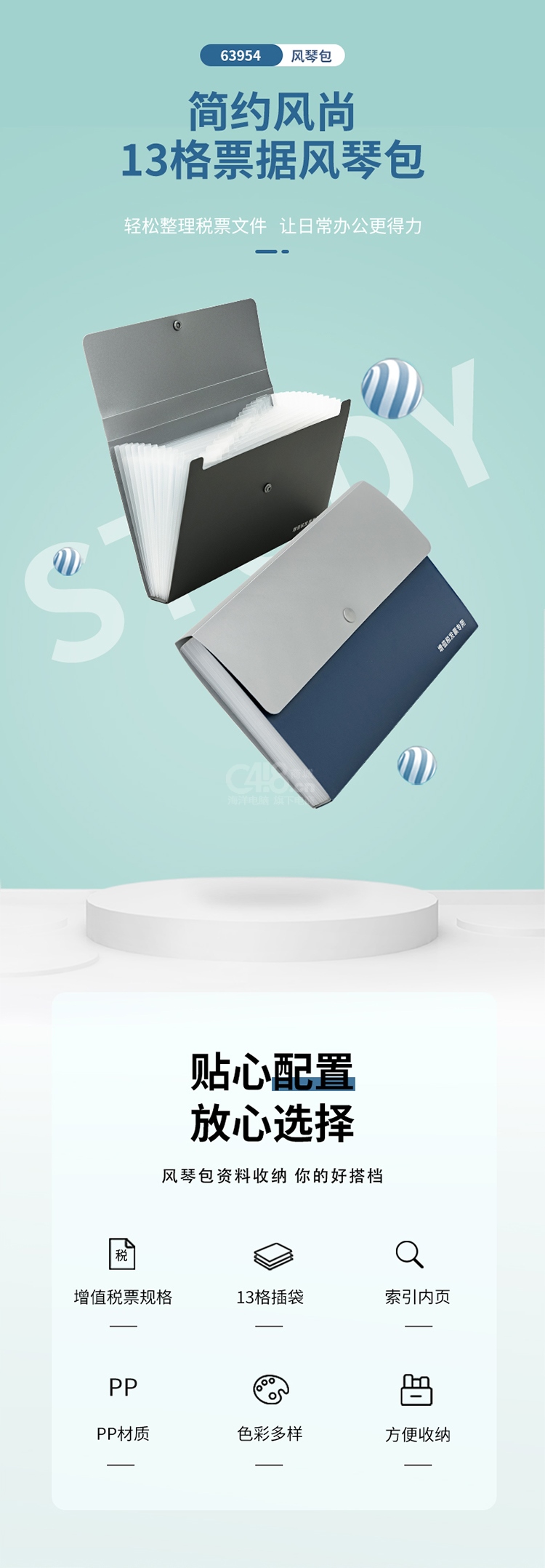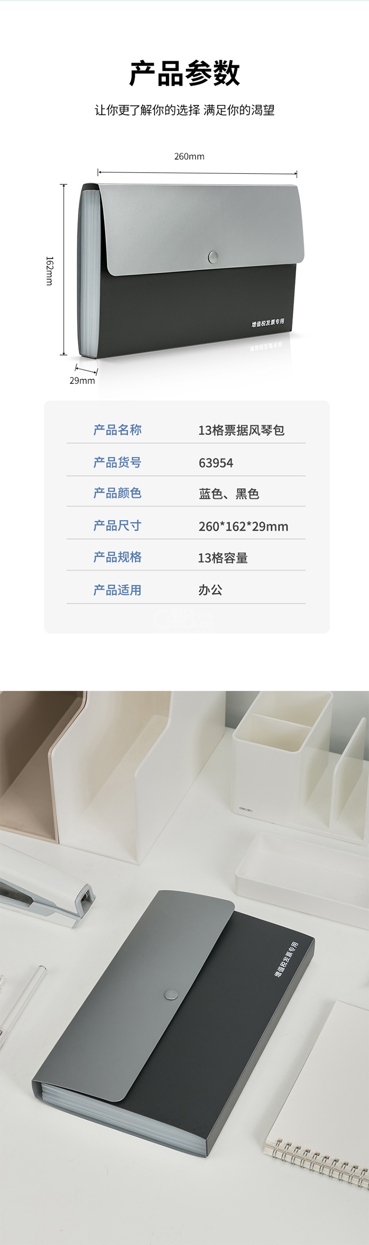 “deli/得力”No.63954 票據(jù)風琴包 單個裝(顏色隨機13格增值稅發(fā)票收納袋多層文件夾文件保護)