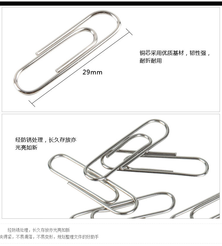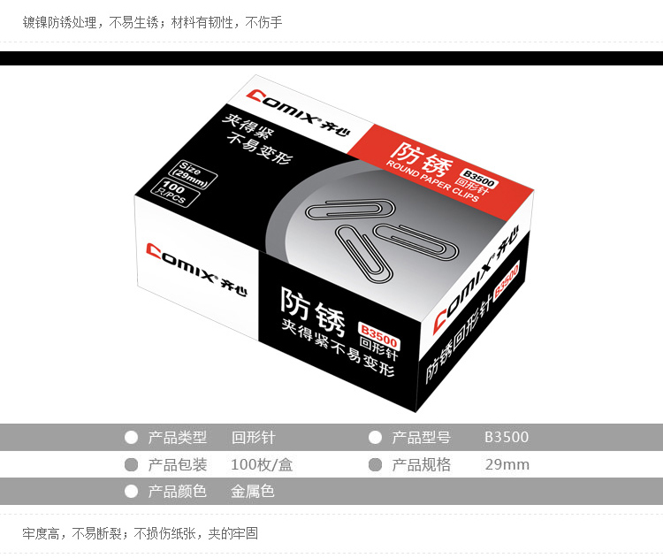 “COMIX/齊心”B3500 回形針 1盒裝(金屬色29mm曲別針鍍鎳防銹辦公用品100枚/盒10盒/條)