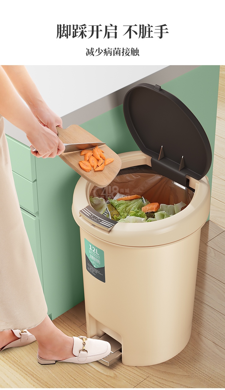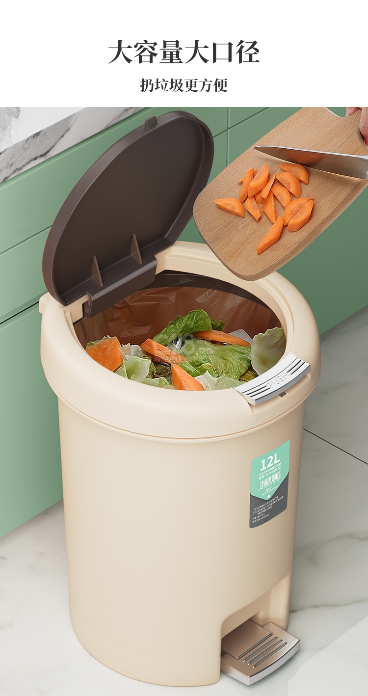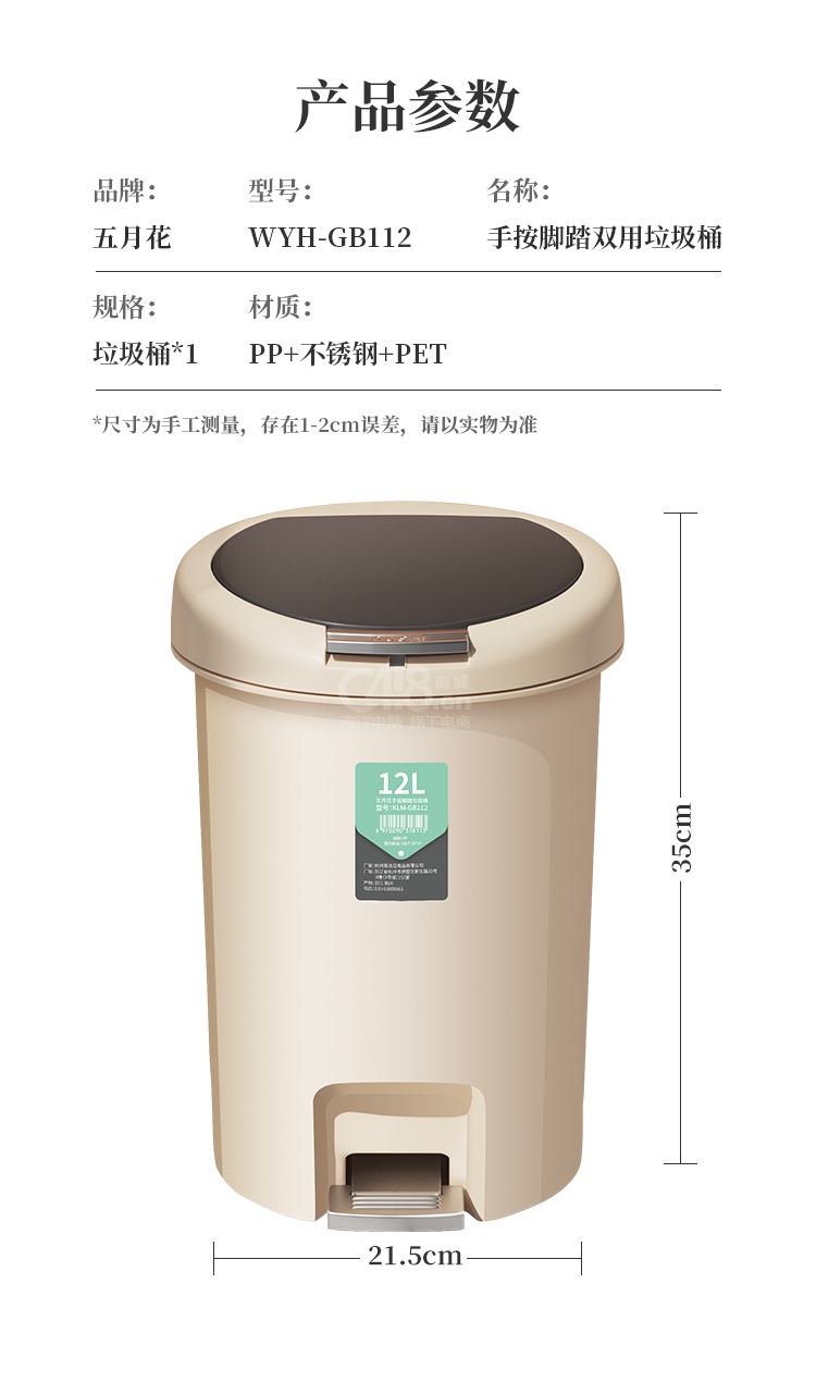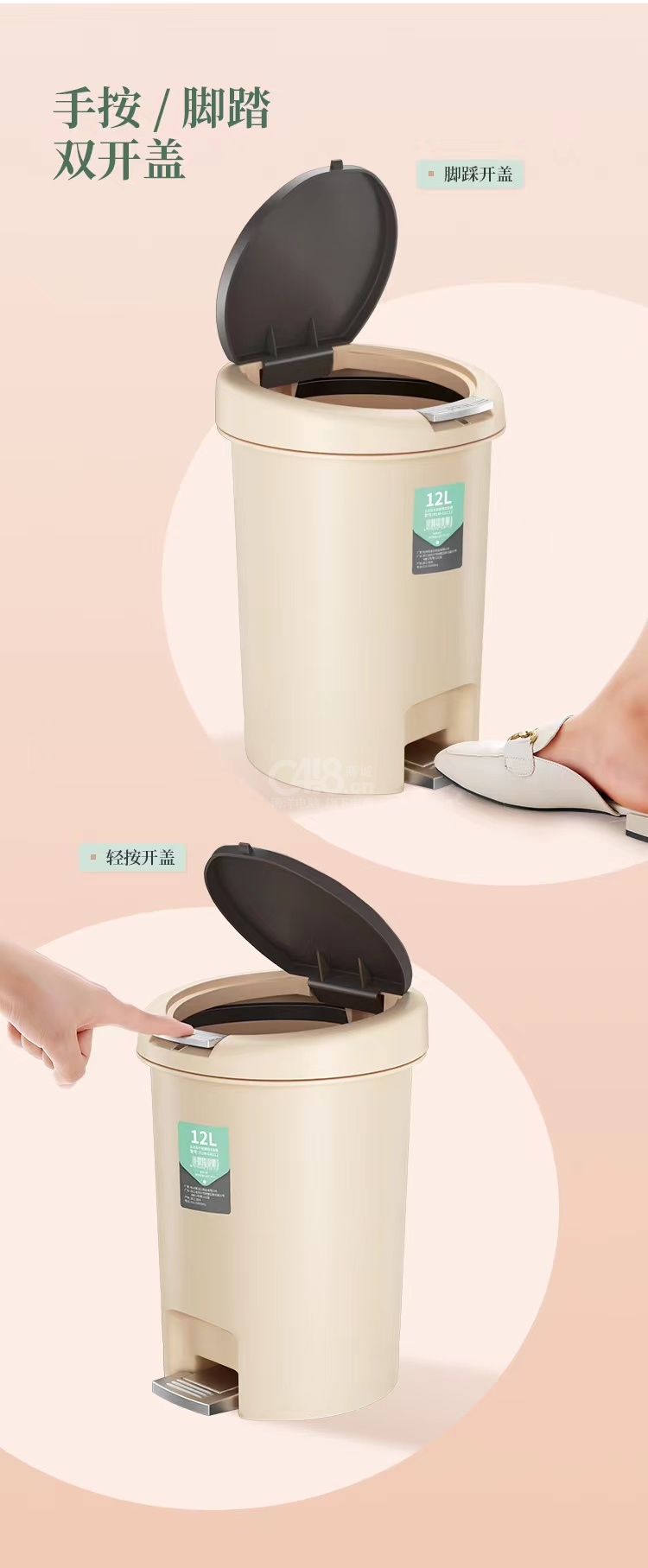 “May Flower/五月花”KLM-GB112 手按腳踏垃圾桶 單個裝(翻蓋12L紙簍衛(wèi)生間廚房客廳)