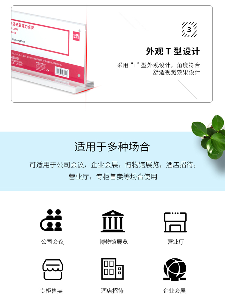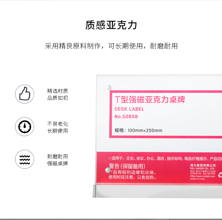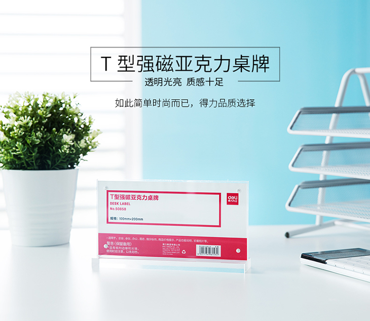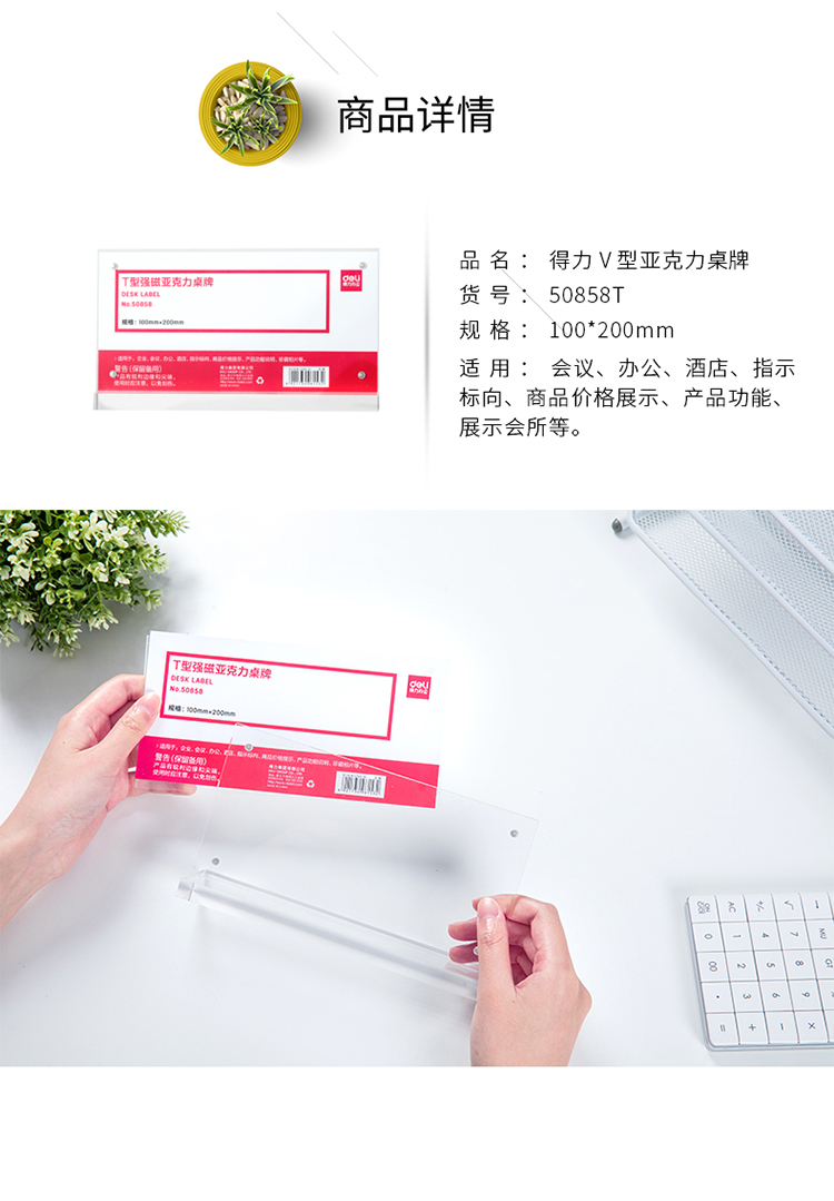 “deli/得力”No.50858 T型強磁亞克力桌牌 單個裝(透明單面桌牌架臺卡)
