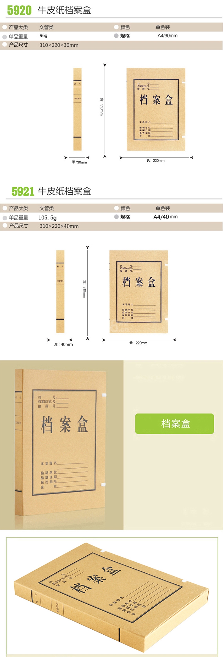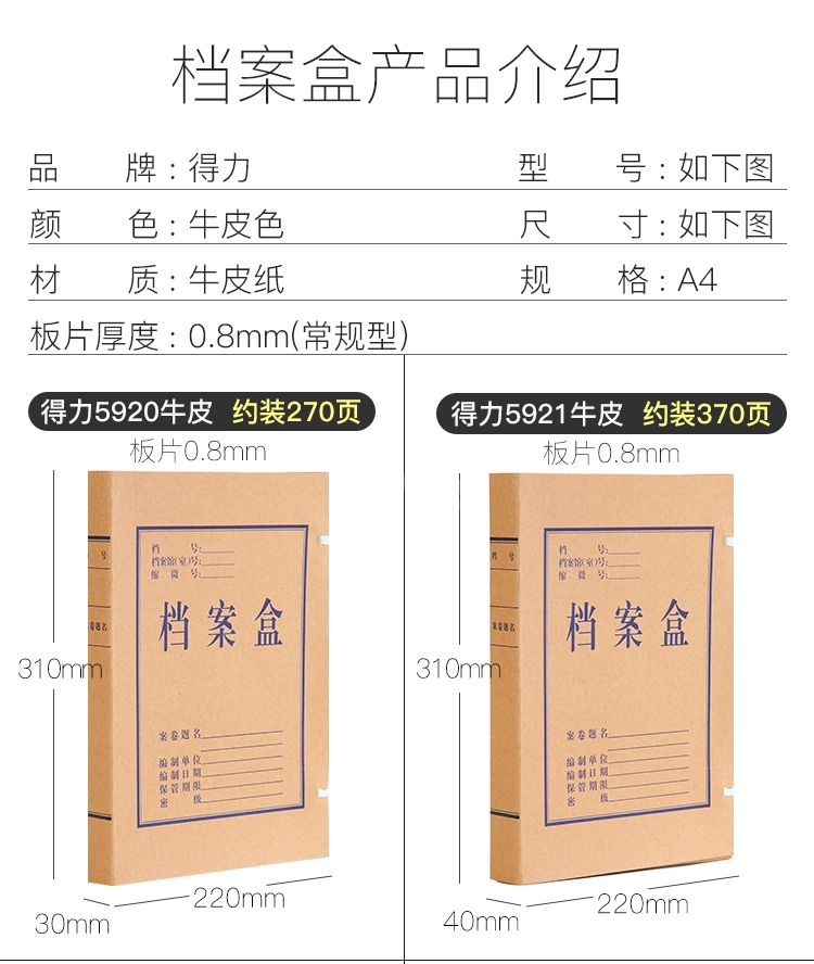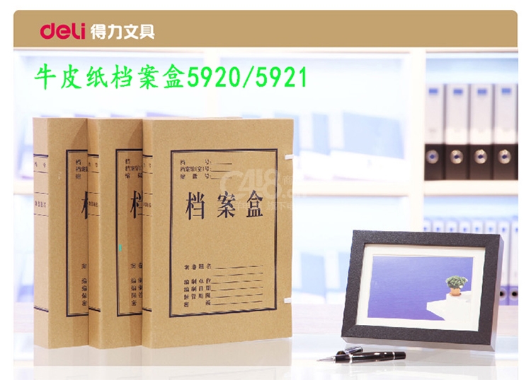得力(deli)1只30mm高質感牛皮紙檔案盒 黨建資料盒 加厚文件收納盒 財務憑證盒 辦公用品5920