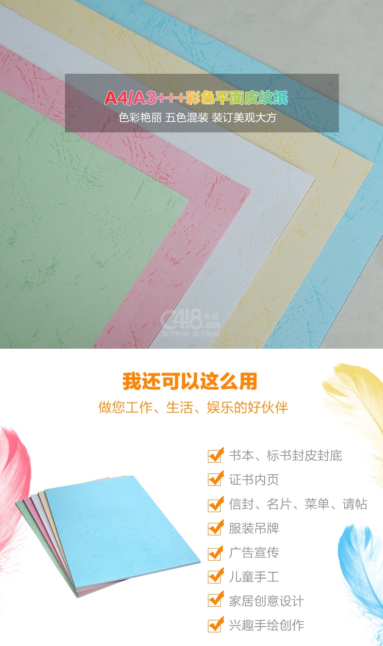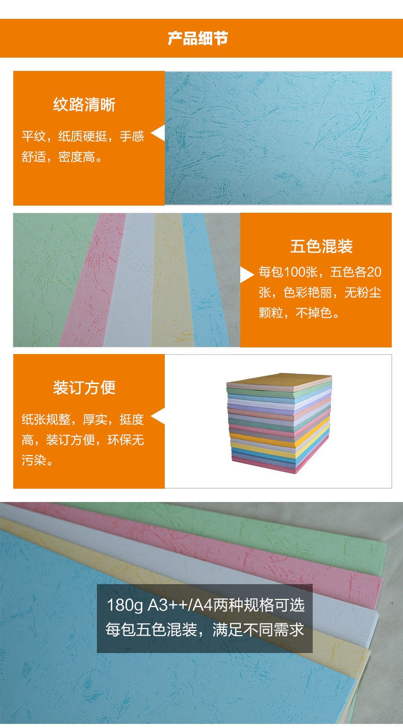 “DOCON/道頓”A3++ 180g 平面皮紋紙 1包裝(五色混裝膠裝機裝訂機仿皮紋紙標書文件合同封面紙云彩紙297*460mm)
