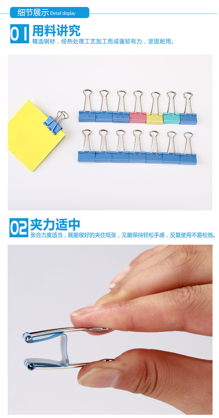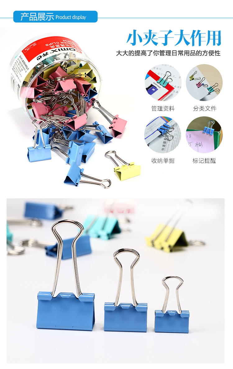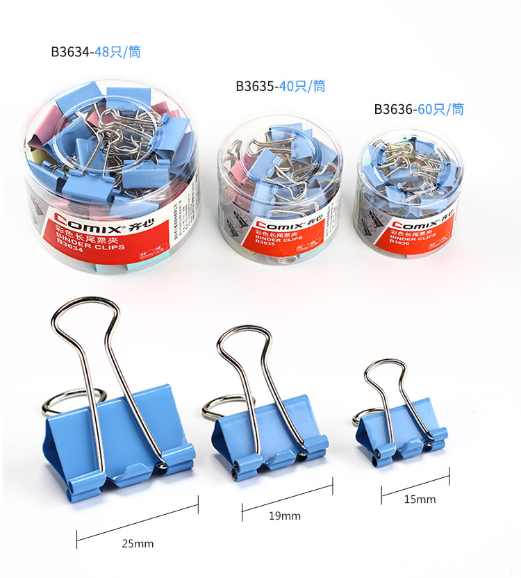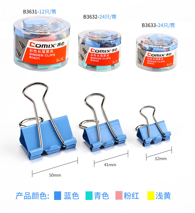 “COMIX/齊心”B3631 彩色長(zhǎng)尾夾 單筒裝(1#50mm金屬燕尾夾票據(jù)夾子辦公用品12只/筒)