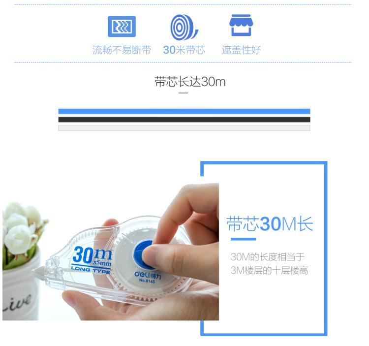 “deli/得力”No.8145 修正帶 單個裝(顏色隨機30m學(xué)生辦公改正帶涂改帶6個/盒)