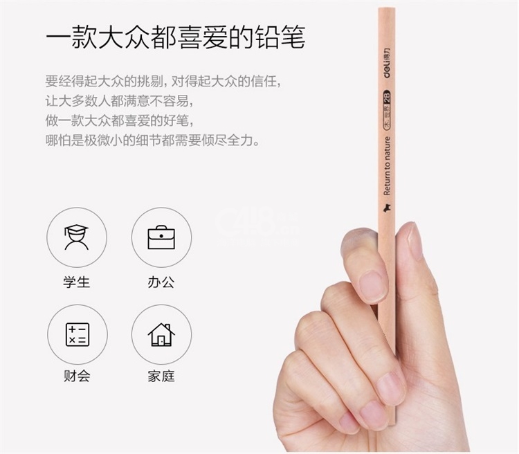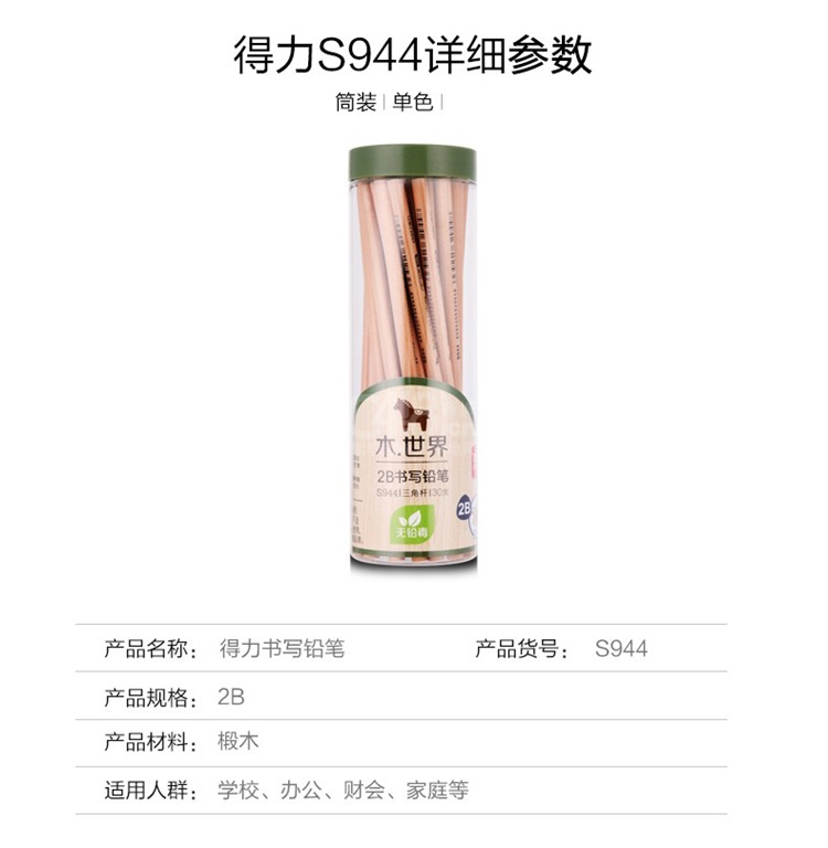 “deli/得力”S909 書寫鉛筆 單盒裝(原木色2B書寫考試?yán)L畫原木輕便裝12支/盒)