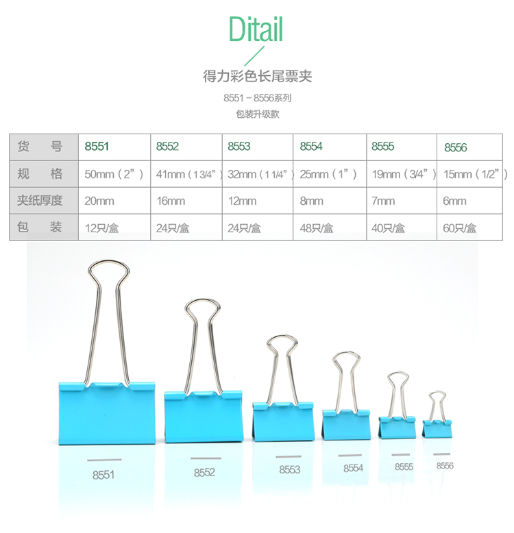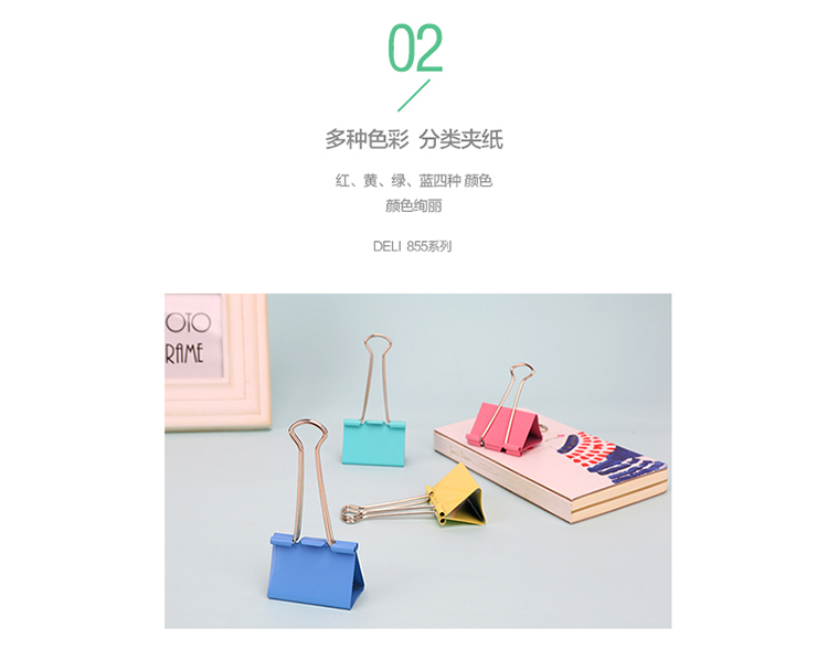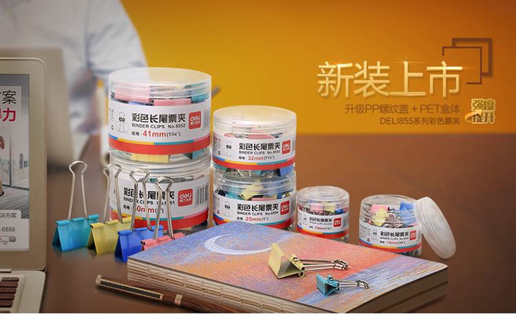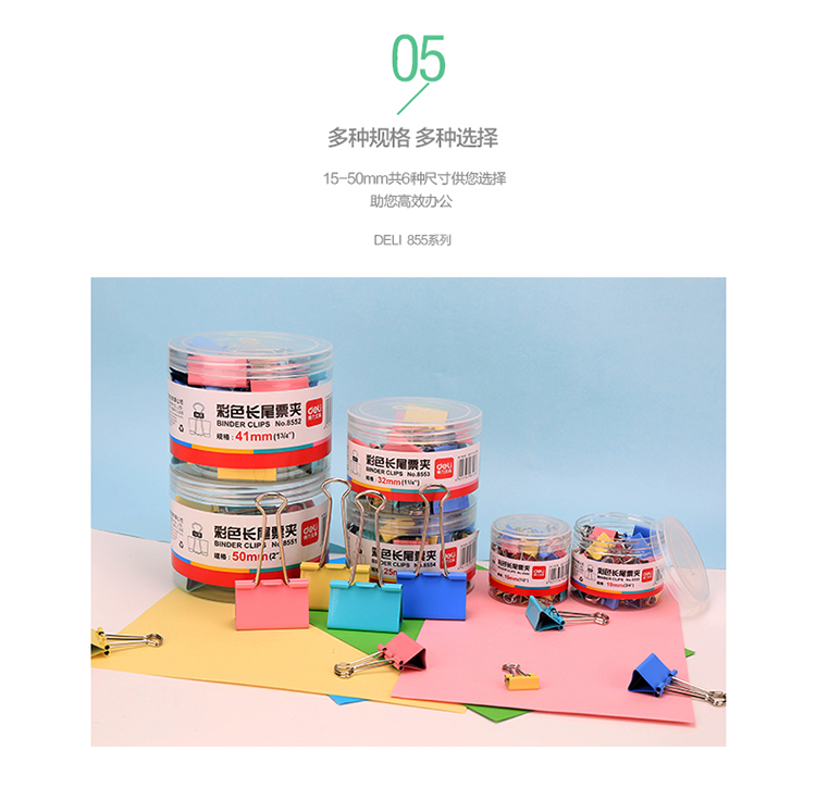 “deli/得力”No.8553 彩色長(zhǎng)尾票夾 單筒裝(混色3# 32mm金屬燕尾夾票據(jù)夾子24只/筒)