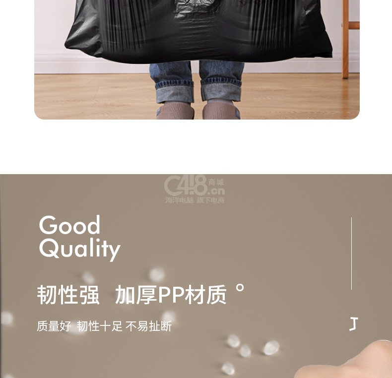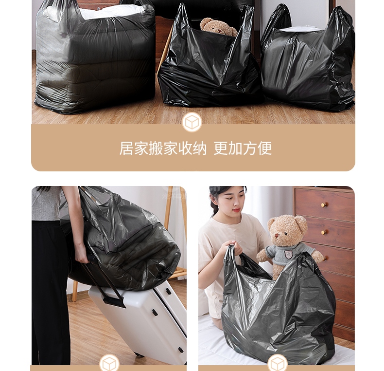 “YaPink/加品惠”HN-1830 垃圾袋 單包裝(黑色提手垃圾袋60*90cm30只1.8絲單層加厚平裝收納搬家塑料袋)