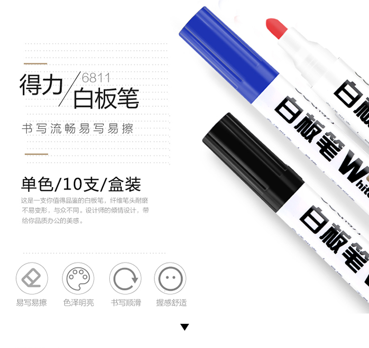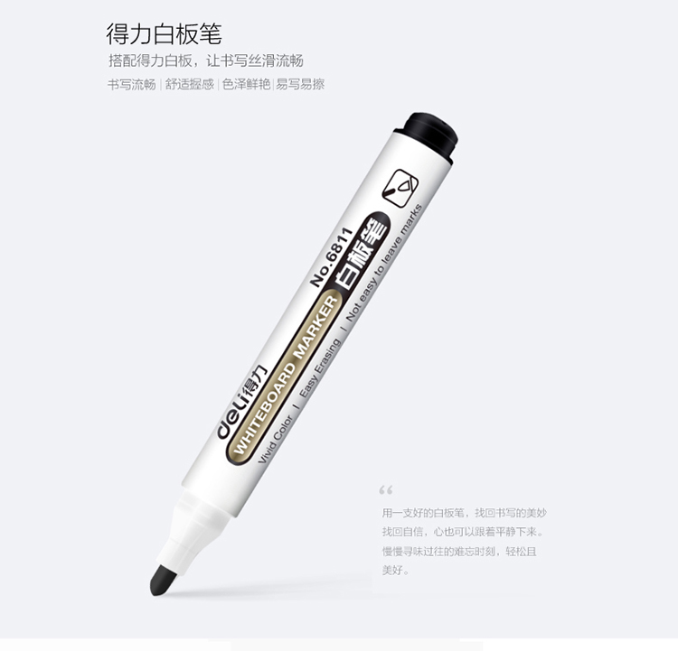 “deli/得力”No.6811 白板筆 單盒裝(黑色辦公會(huì)議可擦易擦10支/盒)