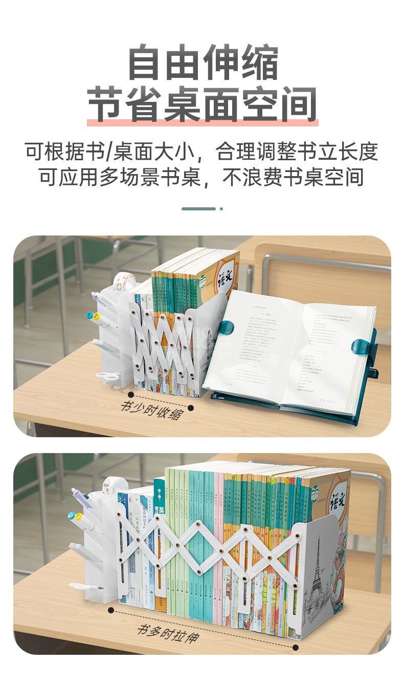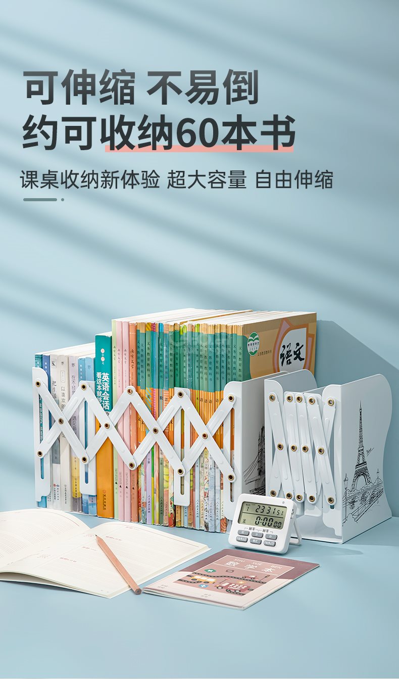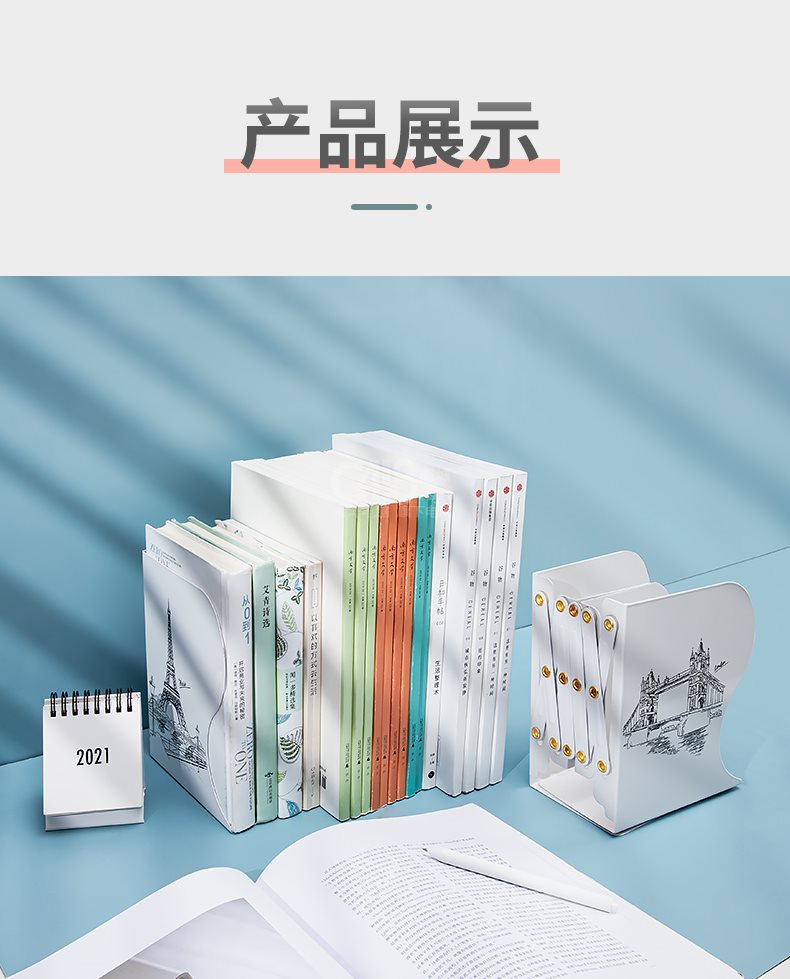“NANGUOSHUXIANG/南國書香”SX-105c 可伸縮書立 單個(gè)裝(倫敦大橋?qū)W生文藝大號收納鐵盒簡易桌上書架書夾書靠書擋書板)