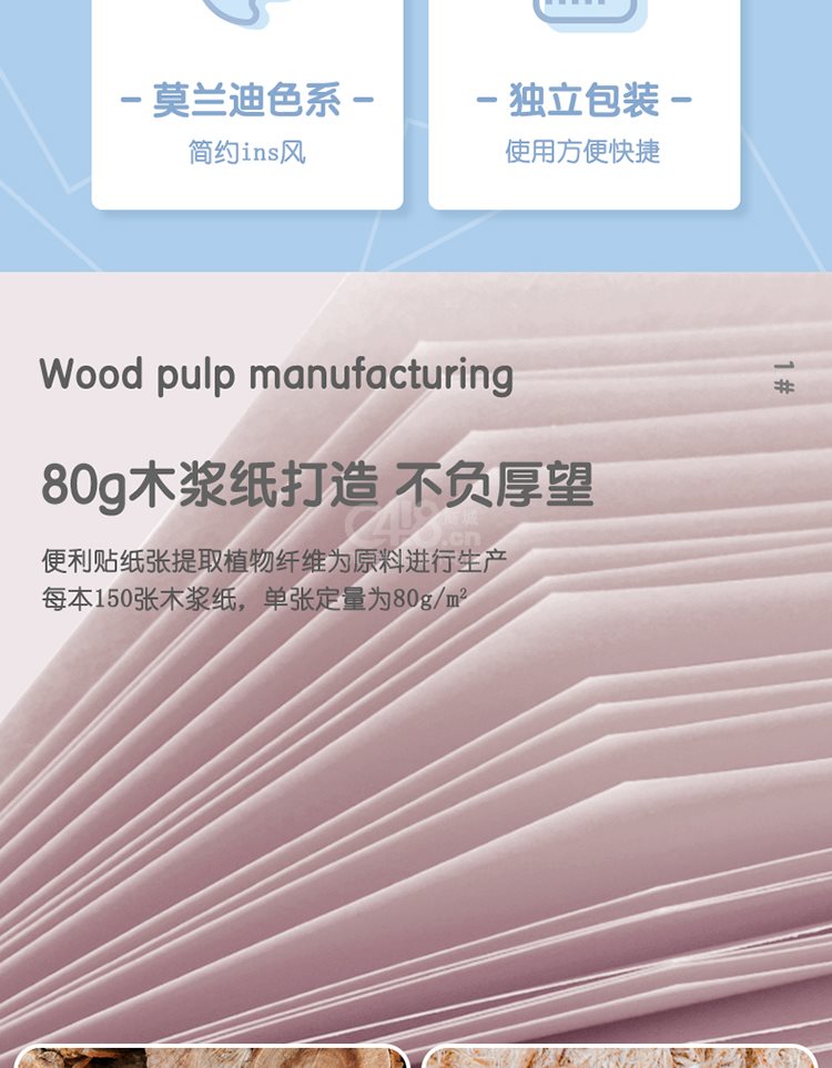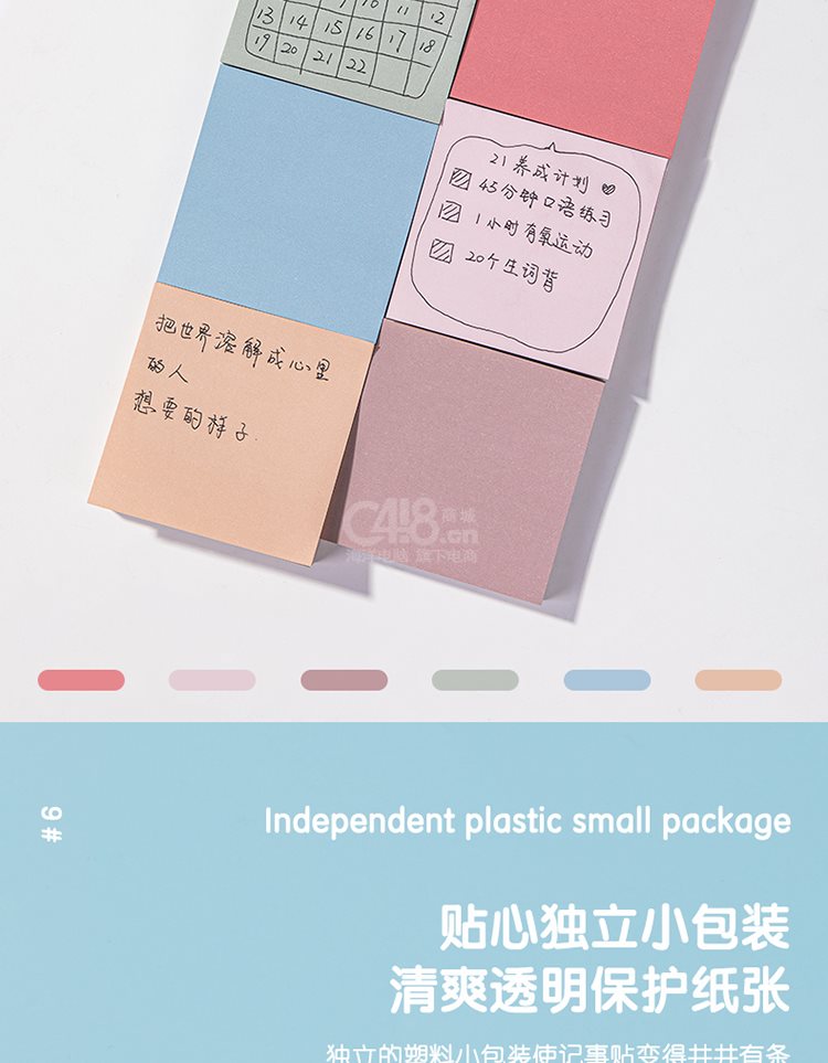 “deli/得力”No.21553 記事貼 單包裝(淳調(diào)系列76*76mm莫蘭迪色系便利貼便簽紙便簽本辦公用品150張/包)
