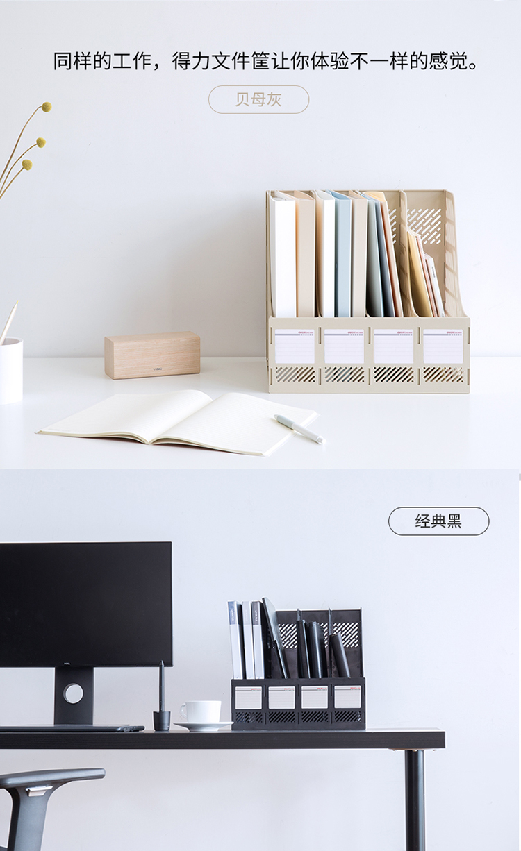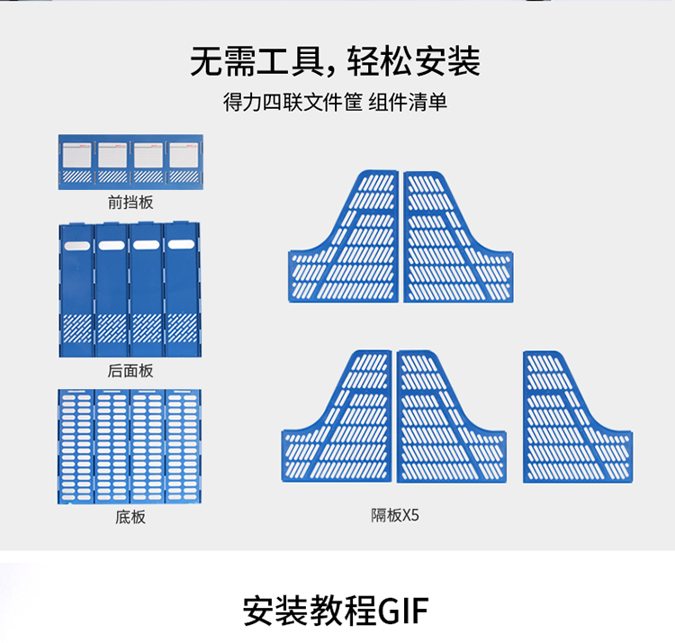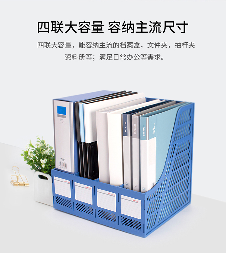 “deli/得力”No.9848 四聯(lián)文件框 單個(gè)裝(灰色鏤空桌面四欄帶標(biāo)簽穩(wěn)固文件欄文件筐資料框辦公用品)