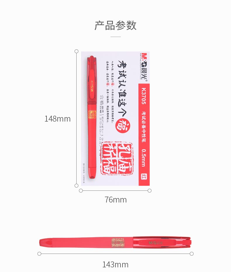 “M&G/晨光”AGPK3705 中性筆 單盒裝(紅色0.5mm孔廟祈福系列考試必備子彈頭拔蓋碳素筆學(xué)生水筆AGPK3705C 12支/盒)