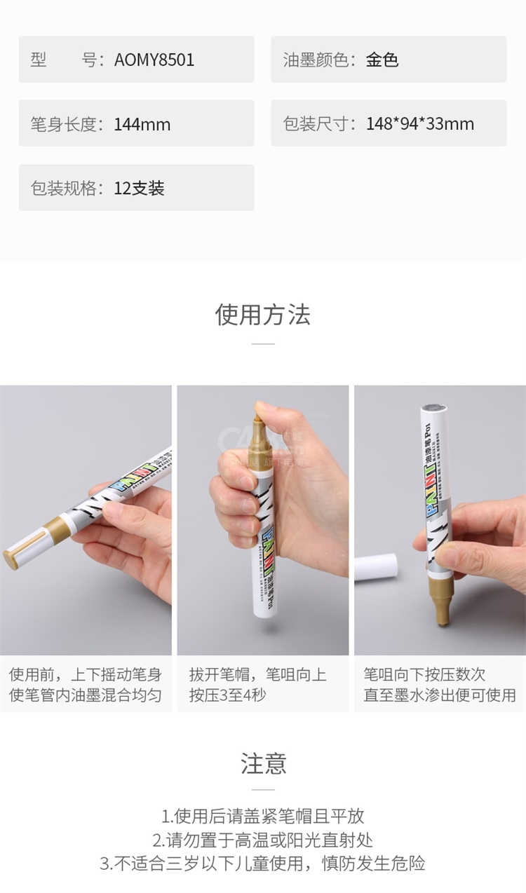 晨光(M&G)金色油性修補(bǔ)油漆筆簽名簽到記號(hào)筆涂鴉筆 12支/盒AOMY8501