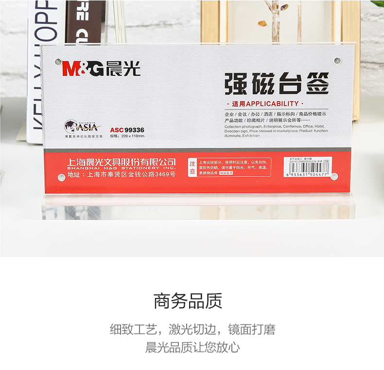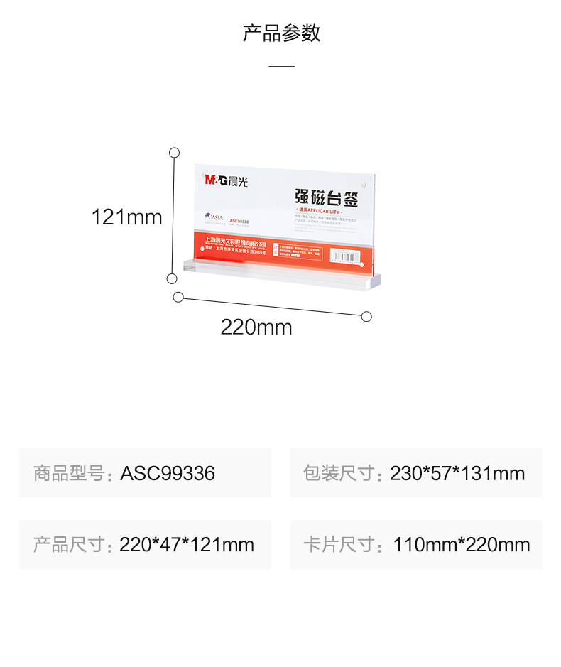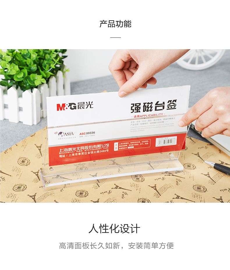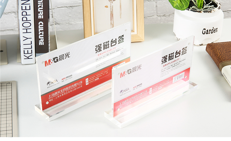 “M&G/晨光”ASC99336 強磁臺簽 單個裝(透明文具橫式T型臺卡220*110mm會議桌牌席位卡座位牌廣告展示牌)