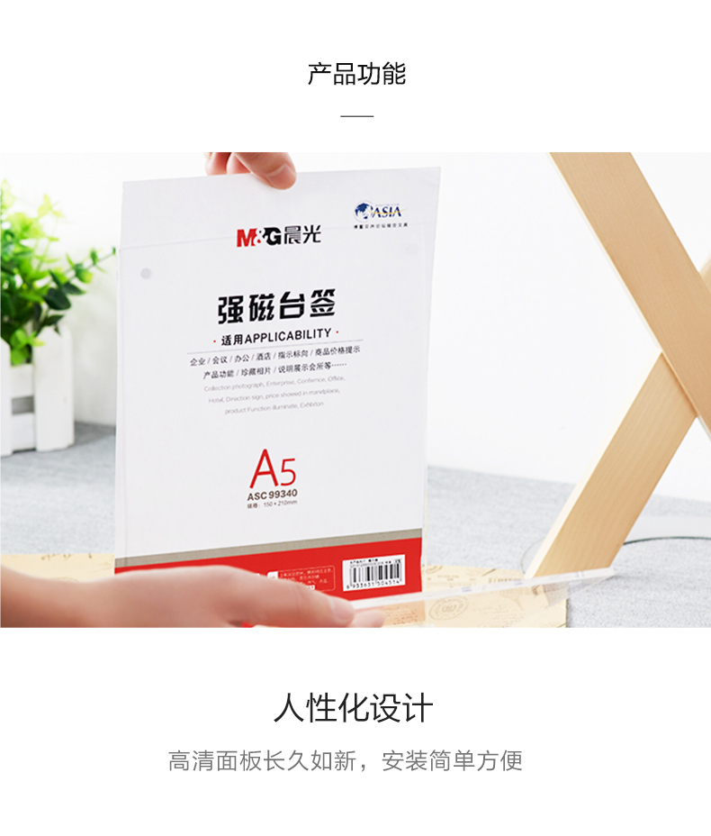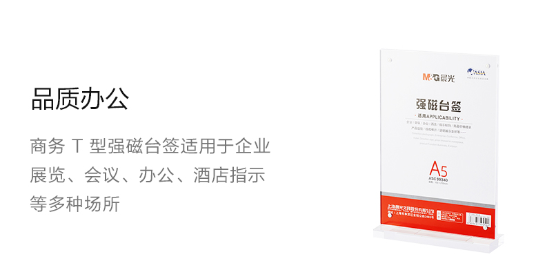 “M&G/晨光”ASC99340 強(qiáng)磁臺(tái)簽 單個(gè)裝(透明文具T型A5豎式磁吸附亞克力桌牌/展示牌/臺(tái)卡/酒水牌臺(tái))