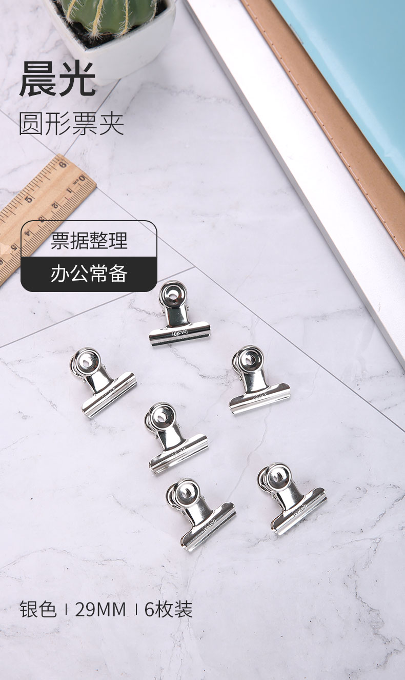 “M&G/晨光”ABS92641 圓形票夾 單袋裝(銀色文具29mm辦公資料整理夾不銹鋼財務票據(jù)夾6個/袋12袋/盒)