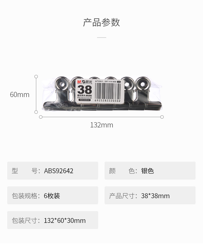 “M&G/晨光”ABS92642 圓形票夾 單袋裝(銀色文具38mm辦公資料整理夾不銹鋼財務(wù)票據(jù)夾6個/袋)