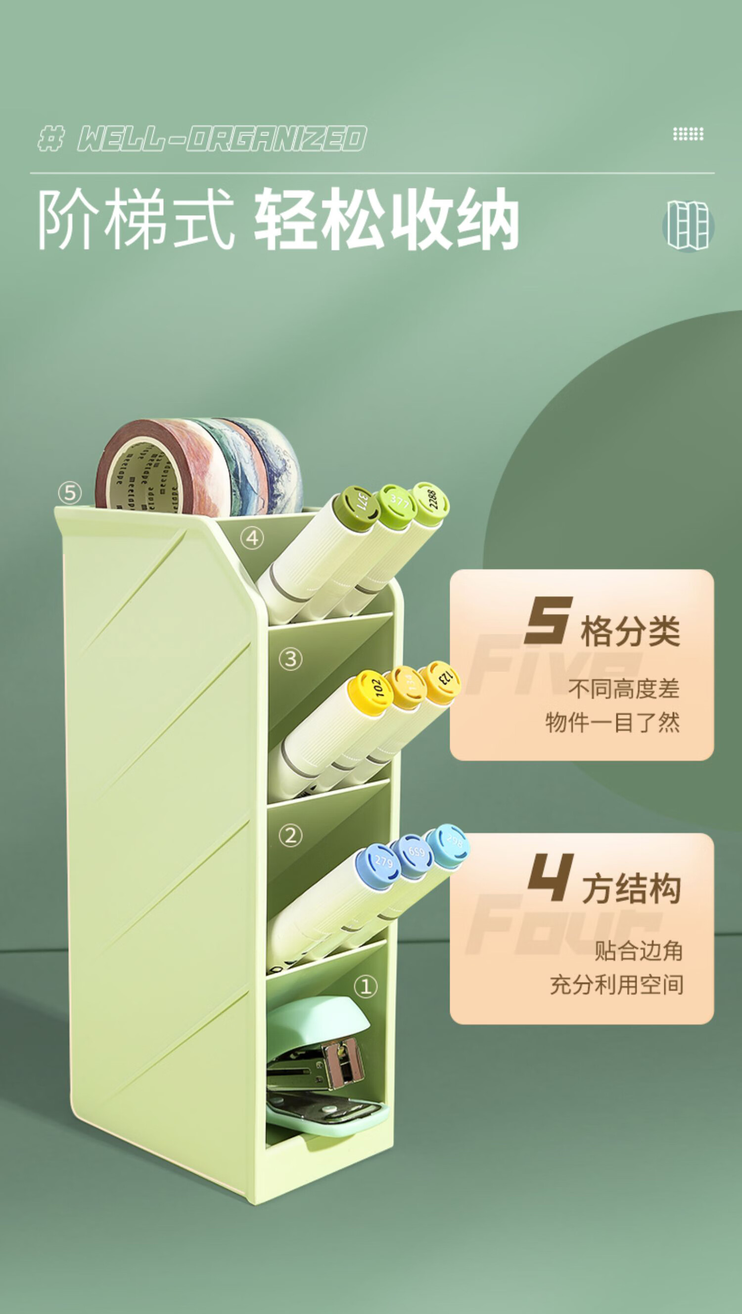 “M&G/晨光”ABT98476 斜插式筆筒 單個(gè)裝(綠色文具學(xué)生辦公用品桌面收納盒ABT98476D)