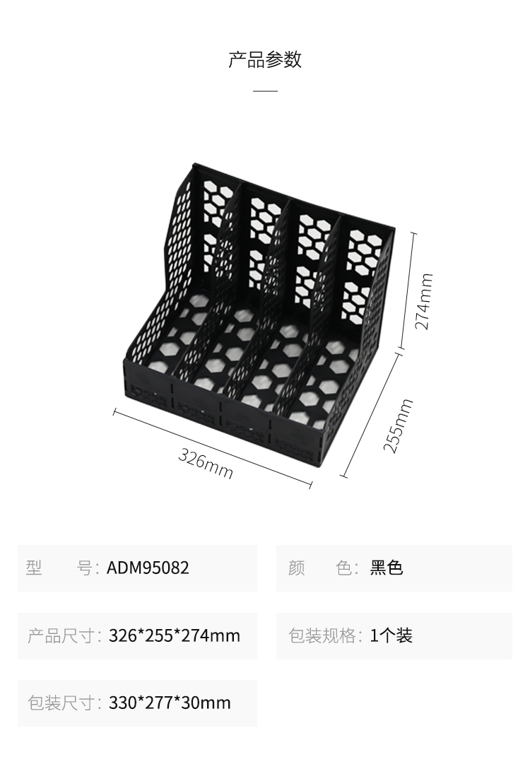 “M&G/晨光”ADM95082 四聯(lián)文件框 單個裝(黑色蜂窩形資料文件架檔案收納框塑料文件筐ADM95082A)