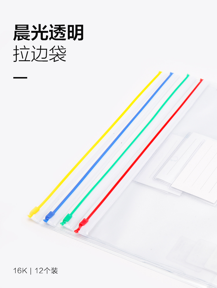 “M&G/晨光”ADM94502 透明PVC拉邊袋 單個(gè)裝(紅黃藍(lán)綠顏色隨機(jī)16K文件資料袋12個(gè)/包辦公文具)