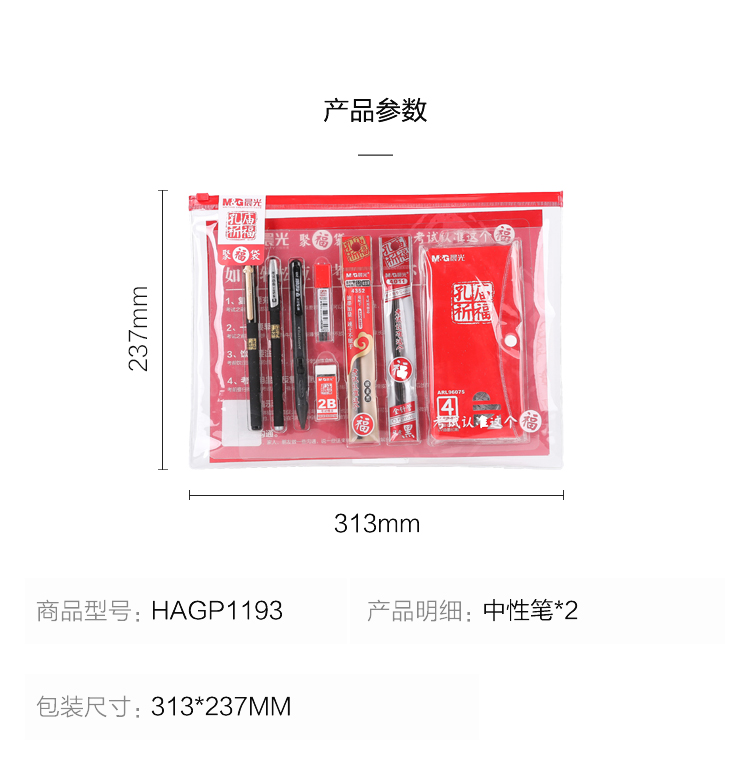 “M&G/晨光”HAGP1193 聚福袋 單袋裝(孔廟祈福系列文具初高中考試開學(xué)套裝含中性筆+替芯+墊板+涂卡筆+套尺量角器+橡皮)