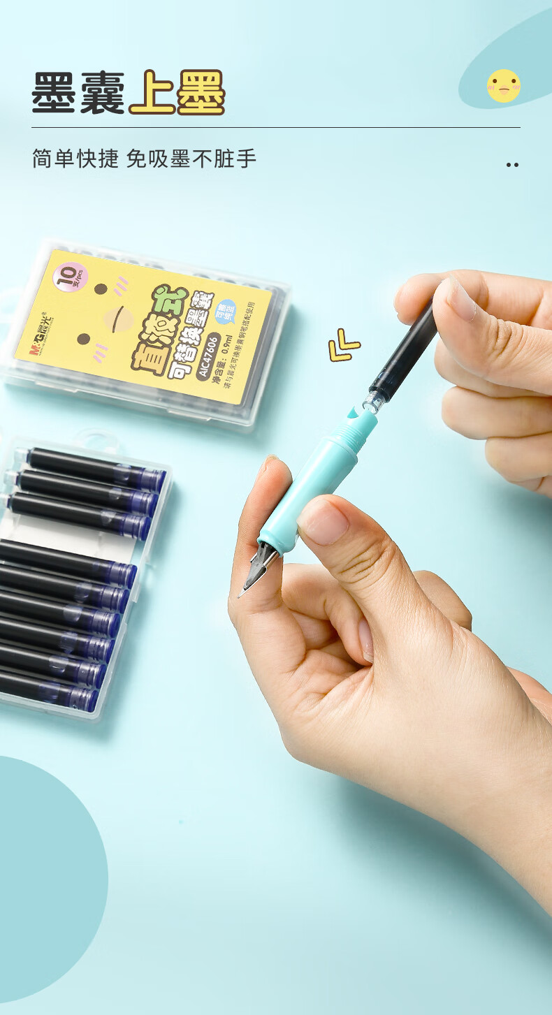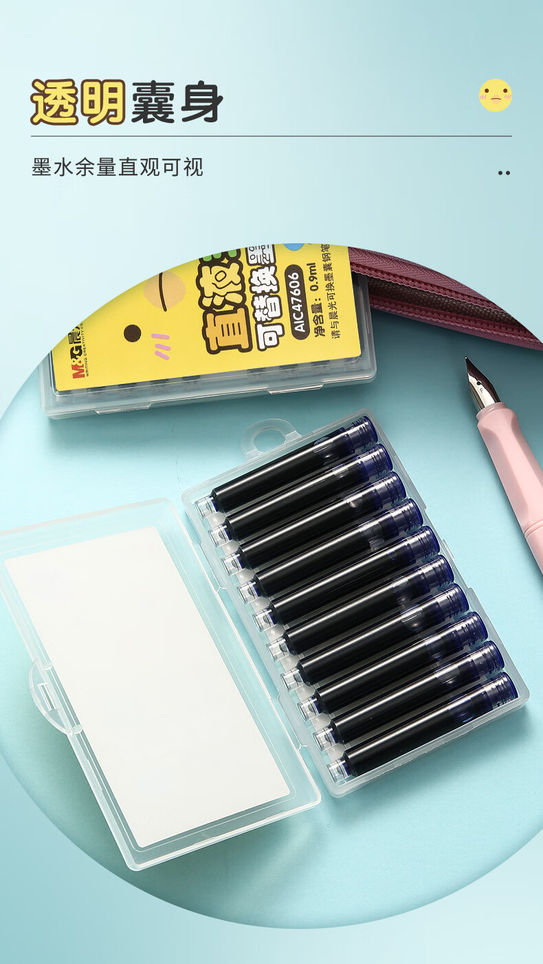 晨光(M&G)文具可擦純藍(lán)墨囊 直液式可換學(xué)生鋼筆替換墨囊墨水 10支裝AIC47606