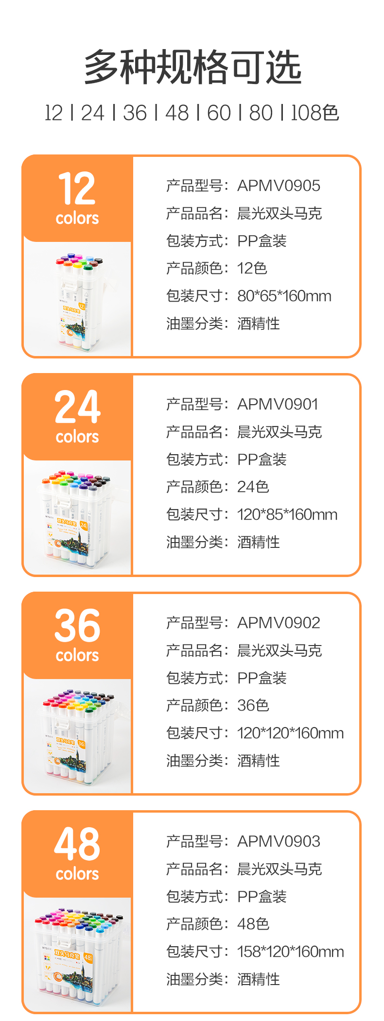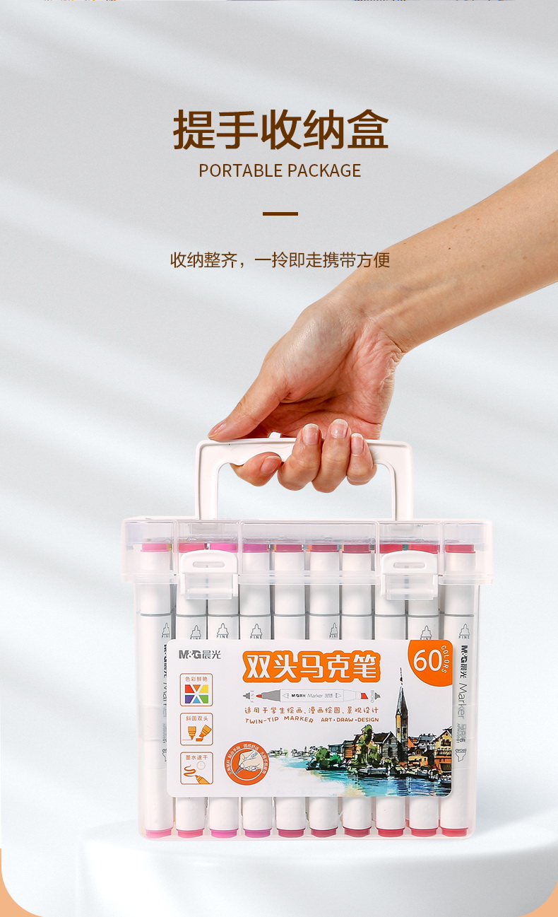 晨光(M&G)文具60色快干雙頭馬克筆 纖維頭學(xué)生重點標(biāo)記記號筆 涂鴉筆繪畫筆 60支/盒APMV0904