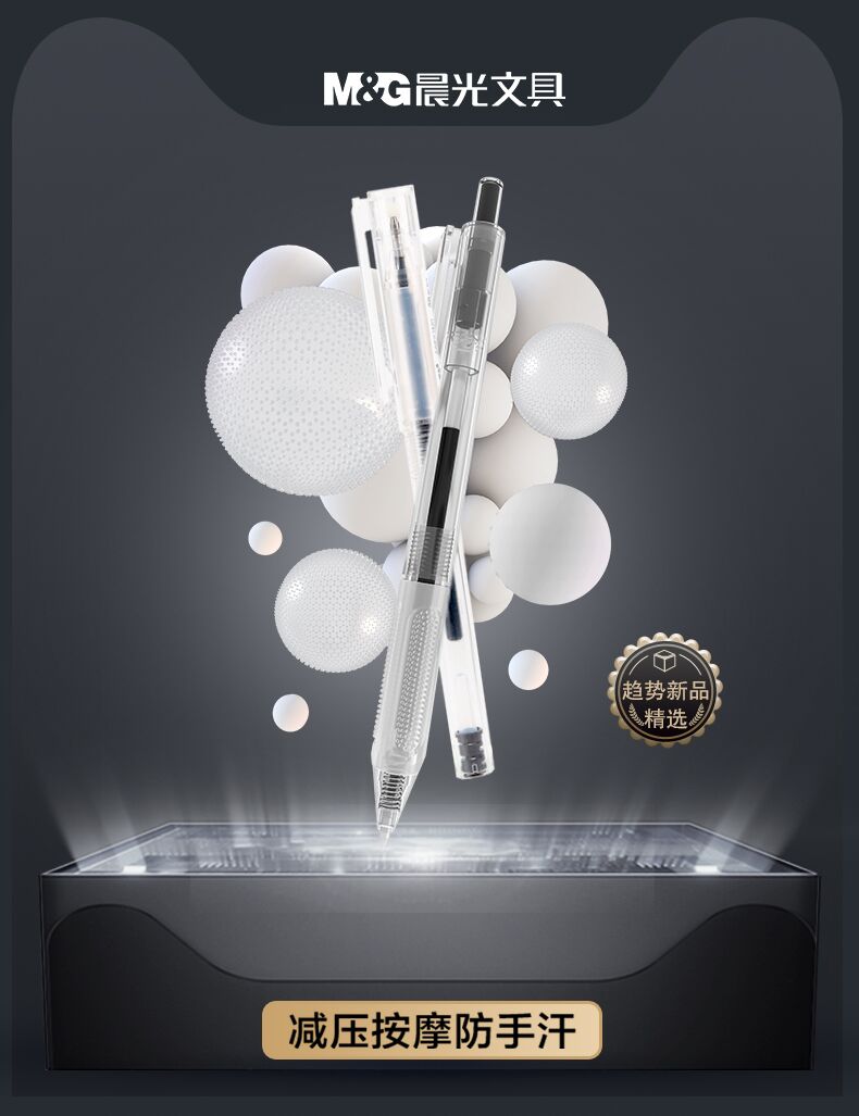 晨光(M&G)文具0.5mm黑色中性筆 按動(dòng)簽字筆(特殊筆握) 小毛刷學(xué)生水筆 12支/盒AGPJ3401