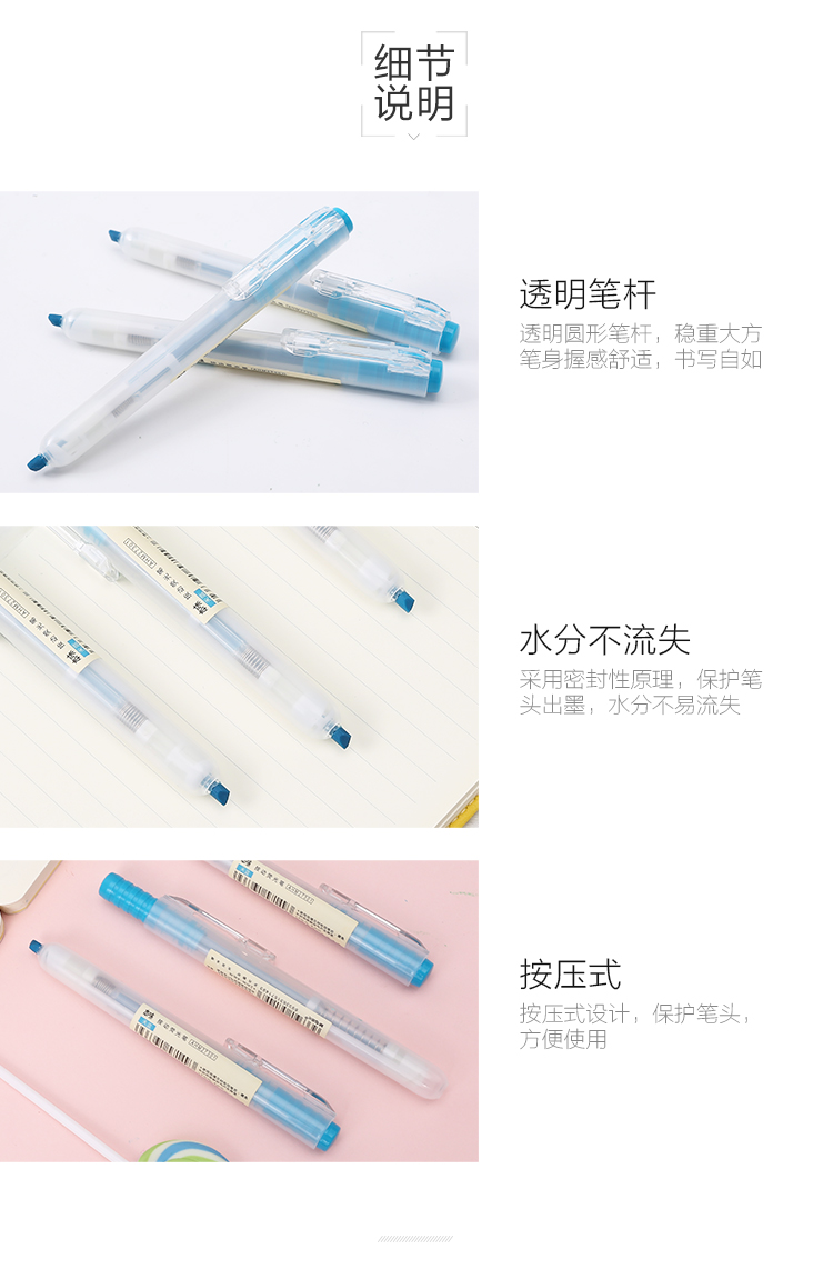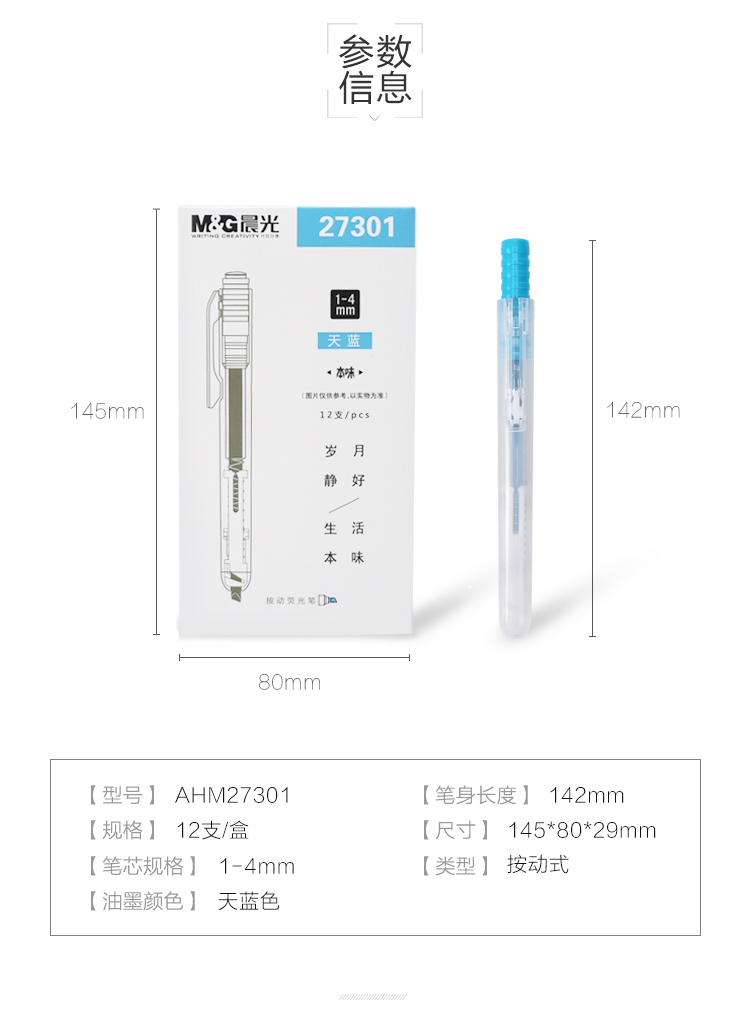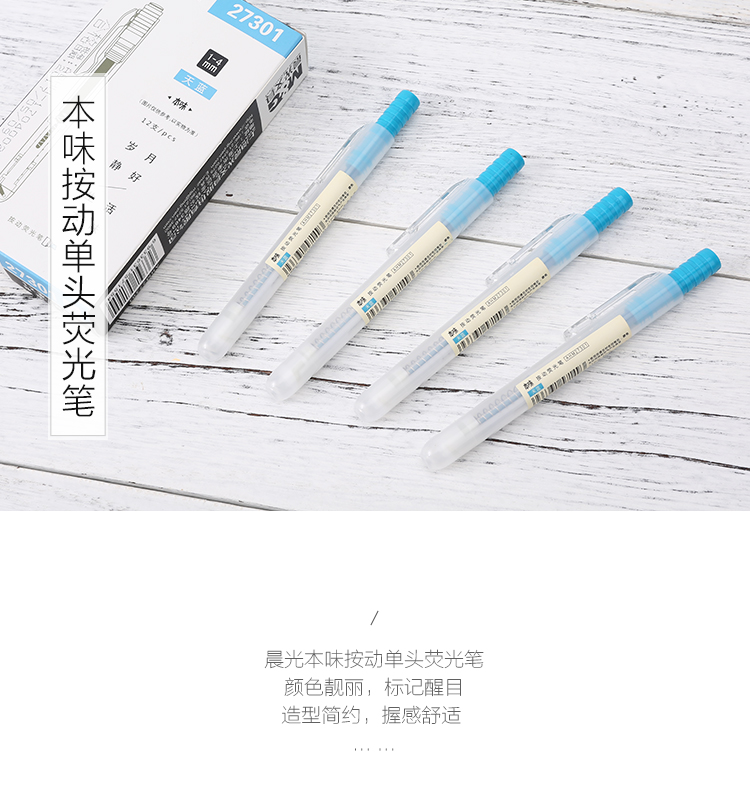 晨光(M&G)AHM27301本味按動單頭熒光筆12支天藍(lán)色