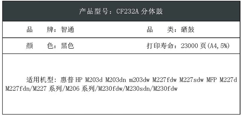 | 適用機(jī)型 | 惠普HP M203d M203dn m203dw M227fdw M227sdw MFP M227d M227fdn/M227系列/M206系列/M230fdw/M230sdn/M230fdw |