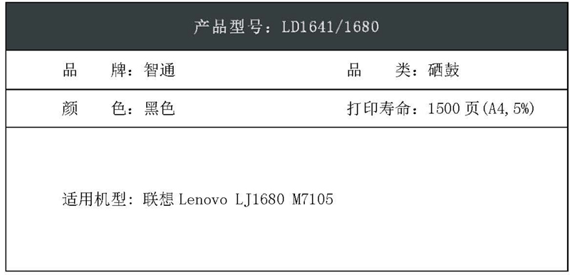 智通(ZT)LD1641/1680 硒鼓 黑色 適用聯(lián)想Lenovo LJ1680 M7105