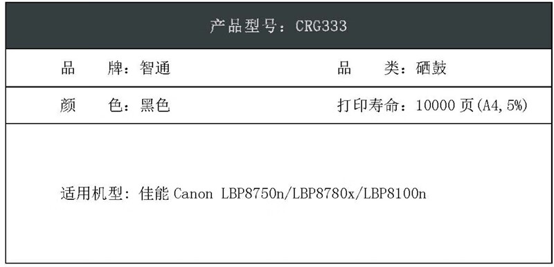 “ZT(kilter)/智通”CRG333 環(huán)保型激光碳粉盒 單個(gè)裝(黑色硒鼓帶芯片ZT-CRG333適用佳能Canon LBP8750n/LBP8780x/LBP8100n CN-CRG333)