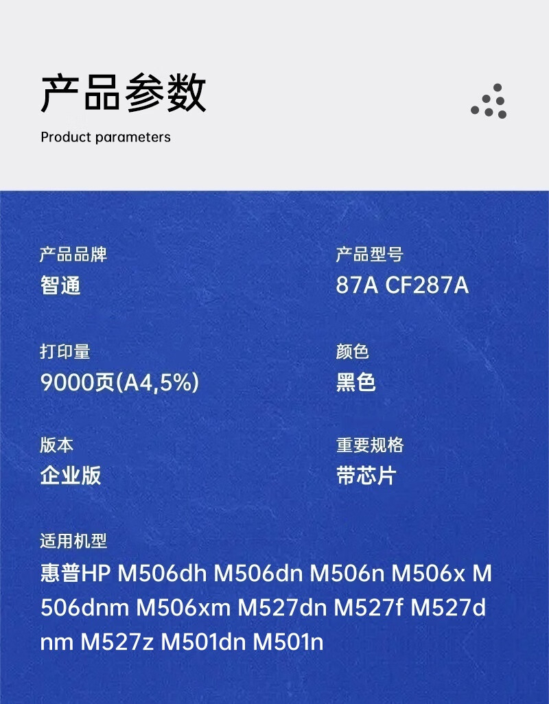 “ZT(kilter)/智通”87A CF287A 環(huán)保型激光碳粉盒 單個裝(黑色硒鼓帶芯片ZT-CF287A適用惠普HP M506dh M506dn M506n M506x M506dnm M506xm M527dn)