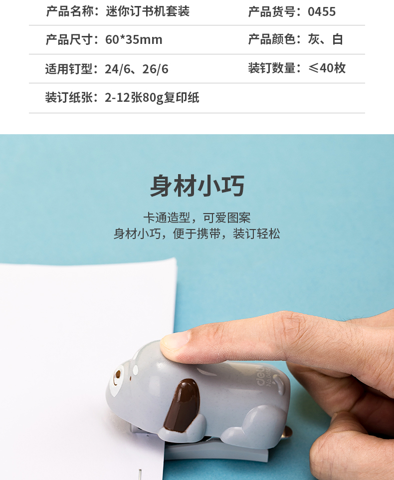 “deli/得力”No.0455 訂書機套裝 單卡裝(混色辦公用品迷你小號訂小型便攜學(xué)生用訂書器小狗款)