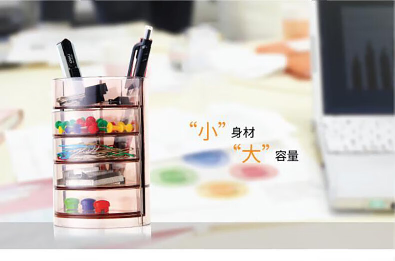 得力(deli)筆筒創(chuàng)意旋轉(zhuǎn)心情筆筒新款時(shí)尚筆座可愛筆筒顏色隨機(jī)學(xué)生辦公收納盒 筆筒+四層抽屜 906