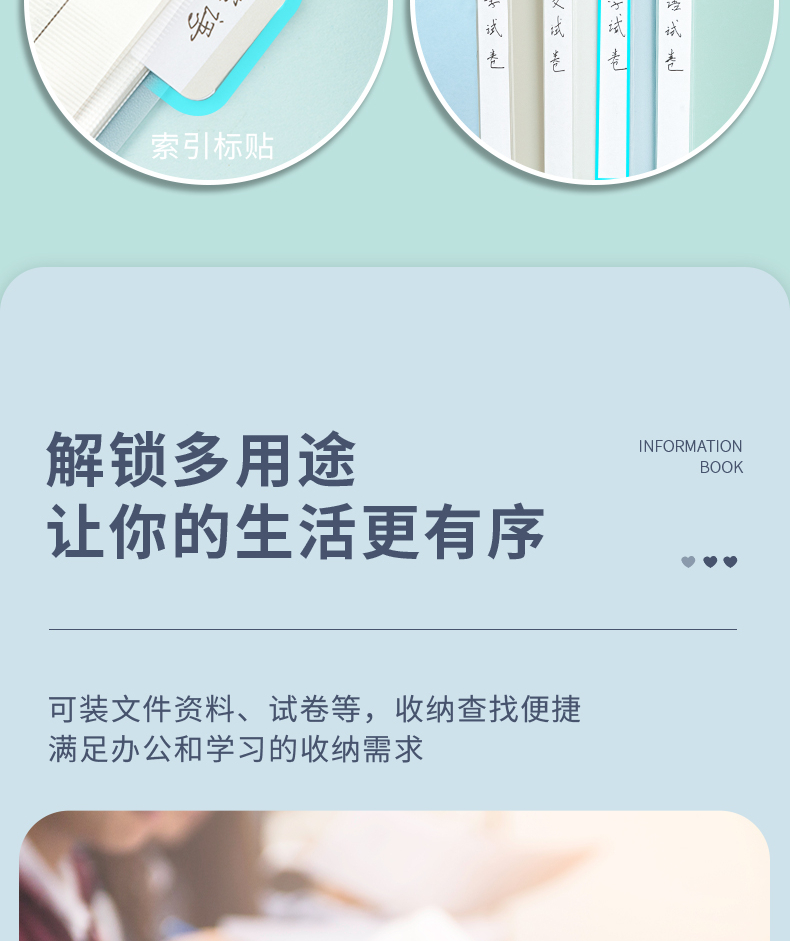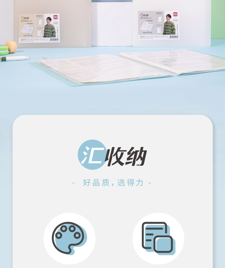 “deli/得力”No.5162 資料冊 單本裝(混色透明源源得力A4活頁多層分頁試卷夾文件夾插頁袋20頁收納資料冊學(xué)生辦公用)