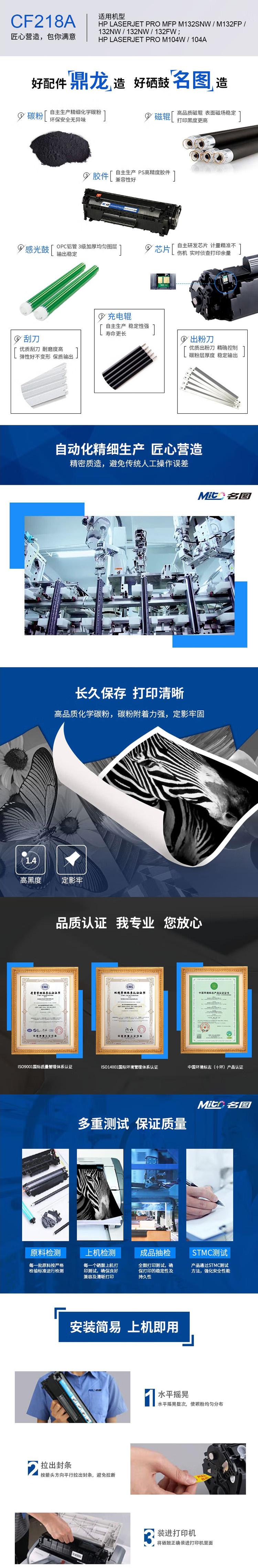 名圖 粉盒 CF218A 硒鼓帶芯片適用惠普M132a m132nw m132fn m132fp M104W M104A打印機粉盒 1個