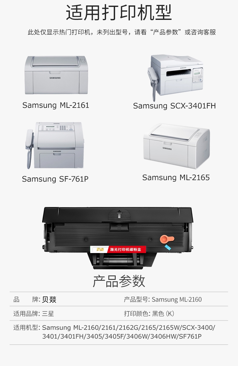 “貝燚”ML-D101易加粉 專業(yè)環(huán)保激光硒鼓 單個裝(黑色BY-ML-D101帶芯片適用于三星SAMSUNG ML-2161 2162G ML-2166W SCX-3401 3406W SCX-3401FH 3406HW)