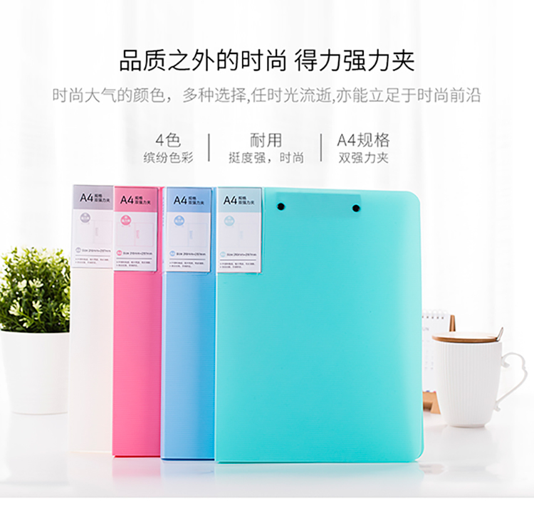 “deli/得力”No.5056 雙強(qiáng)力夾 單個(gè)裝(藍(lán)色亮彩系列A4硬文件夾資料夾不銹鋼夾具試卷資料詩(shī)朗誦簽約夾板文件收納辦公用品)