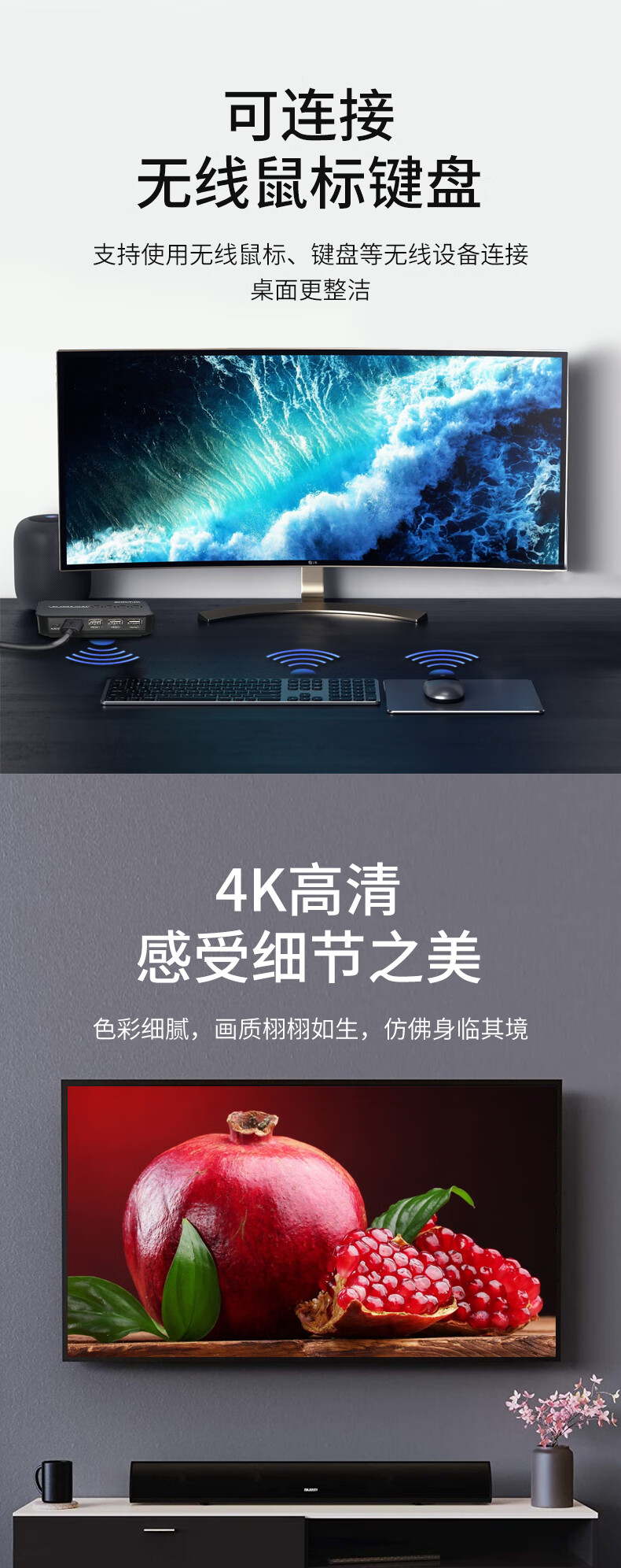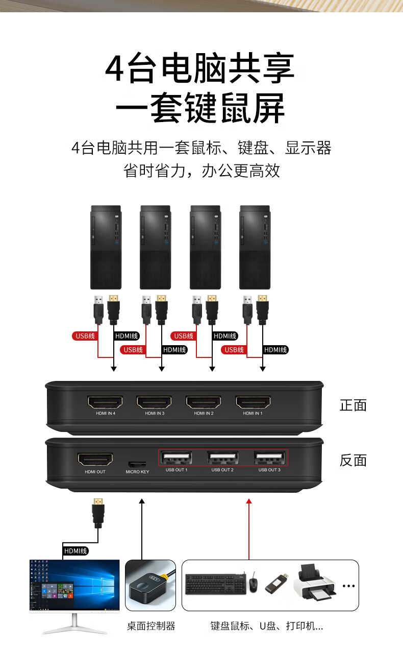 切換器、說明書、電源線、HDMI usb線